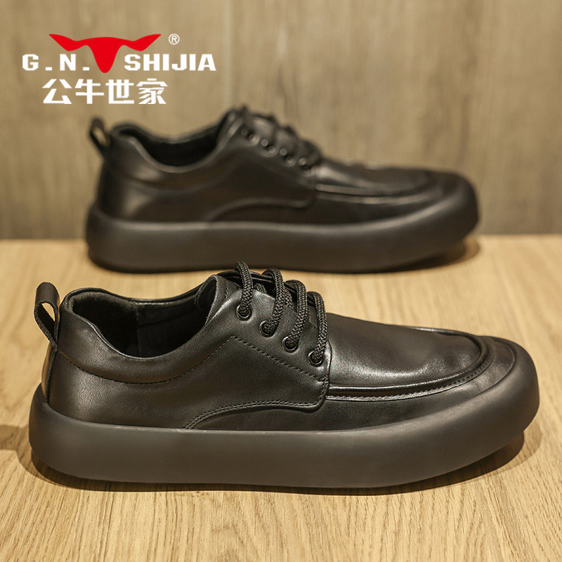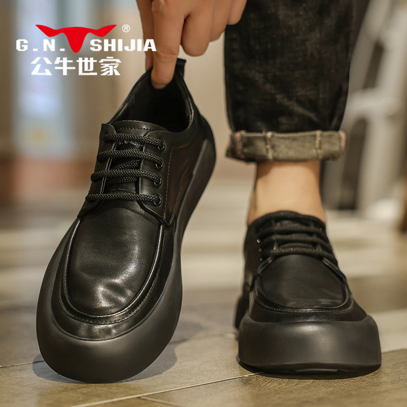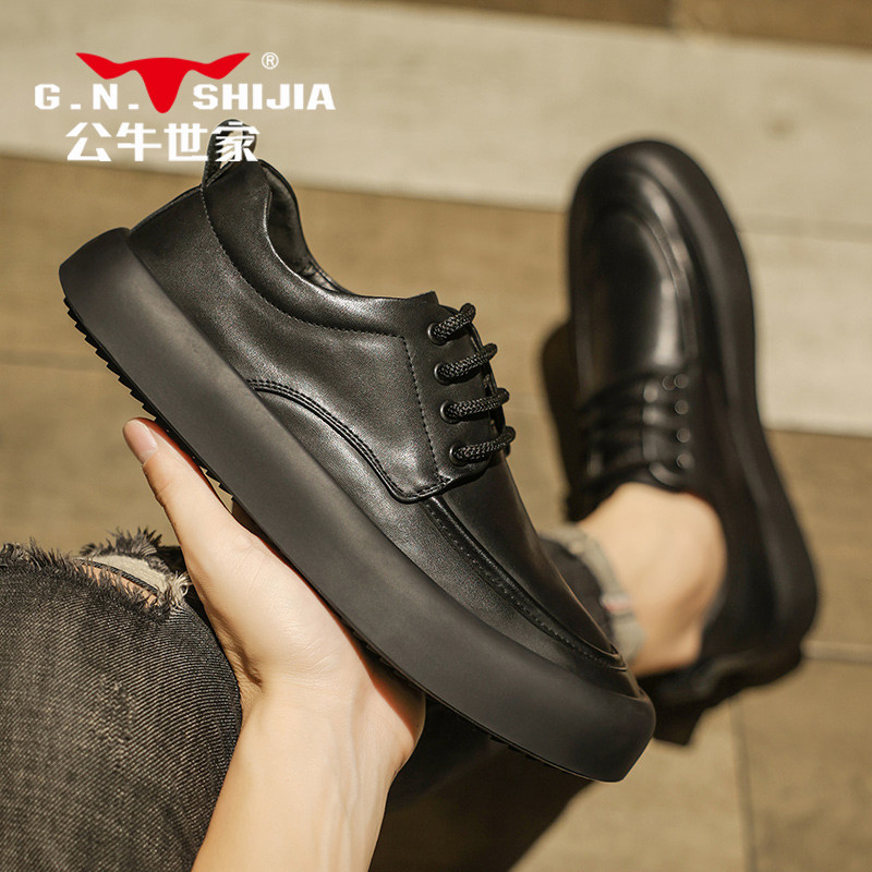 Весенняя кожаная черная обувь на платформе для отдыха для кожаной обуви, осенняя, из натуральной кожи