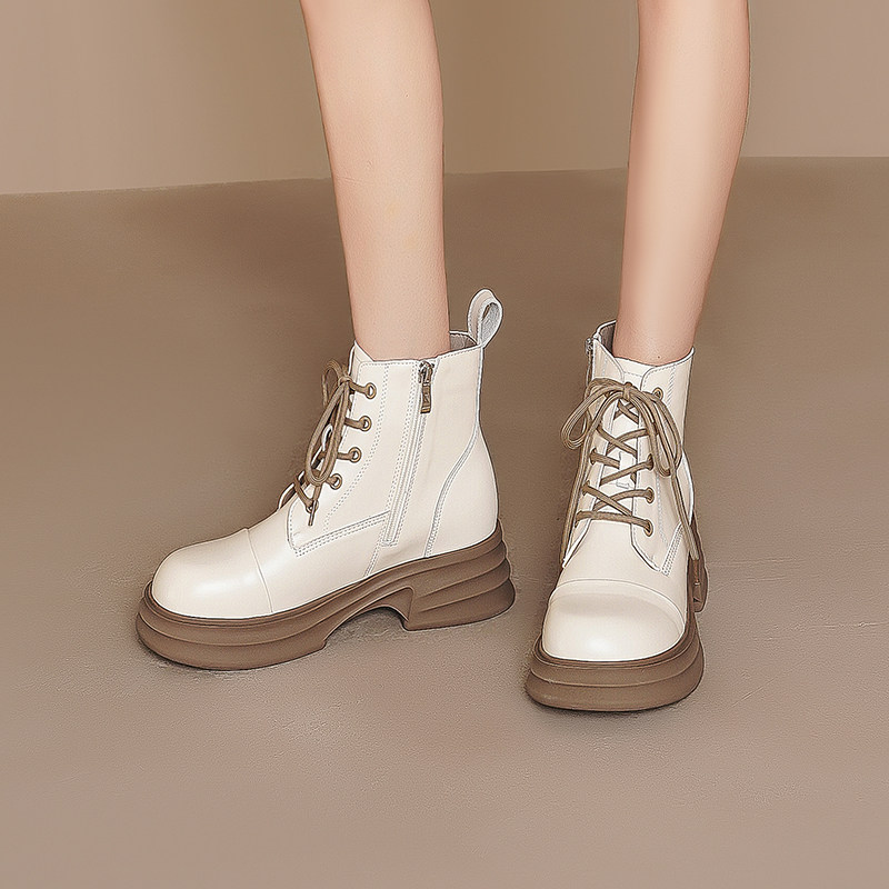 Martens, белые высокие тонкие весенние короткие сапоги на платформе в английском стиле, коллекция 2023, из натуральной кожи, подходит для подростков