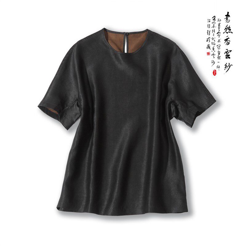 Douyin [Shu Ran Rose Honey - Spring] 1452 Xiangyunsha Повседневный летний однотонный топ с круглым вырезом в стиле ретро в стиле ретро