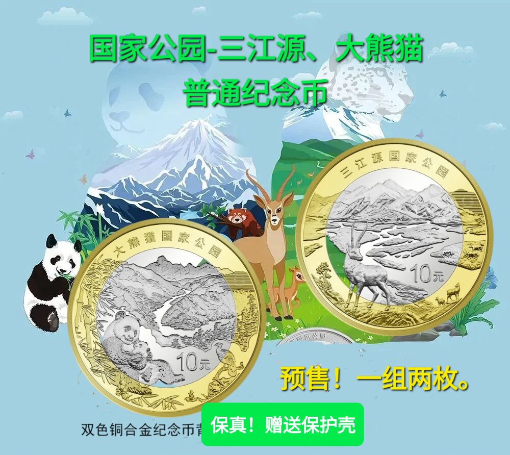 2023 Sanjiangyuan Гигантские гигантские панда памятные монеты 1 Пара 2 Национальный парк 10 Yuan монеты подлинные подарочные коробки Fidelity