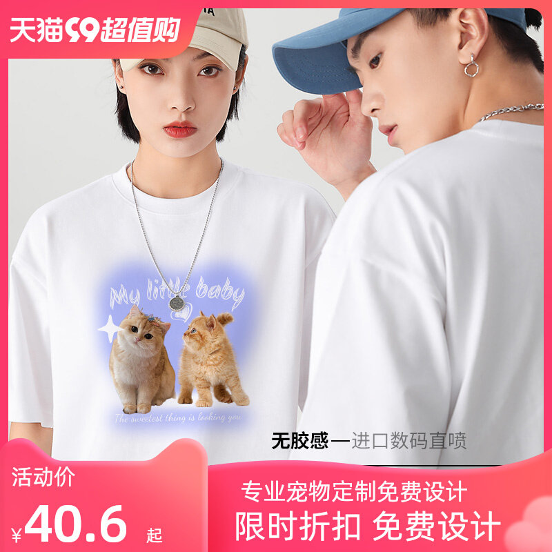 Футболка, индивидуальная цифровая хлопковая фотография для работы, делается под заказ, с печатью вашего логотипа, домашний питомец, кот