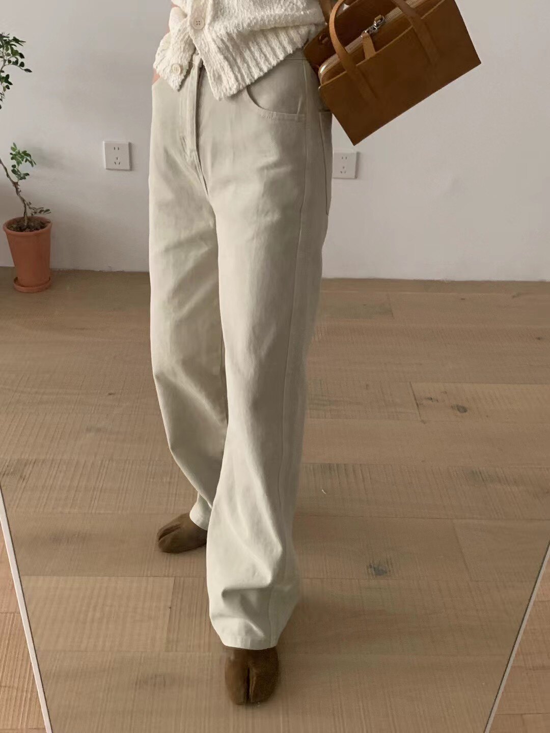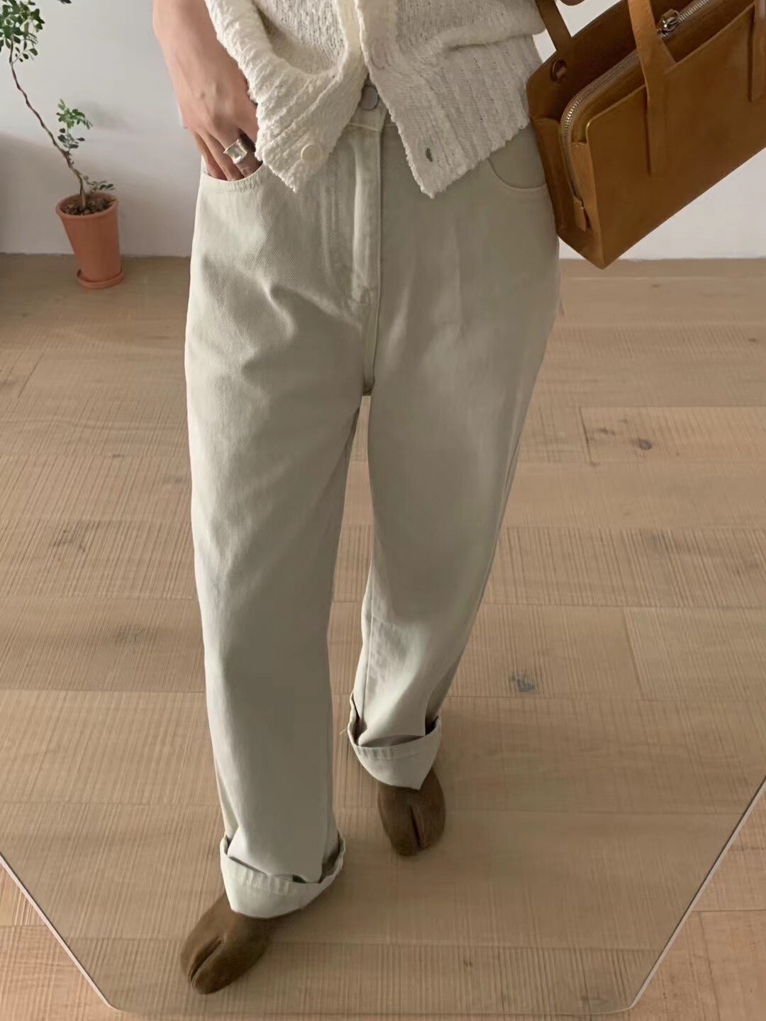 Демисезонные джинсы, белые штаны, высокая талия, подходят для подростков, свободный прямой крой