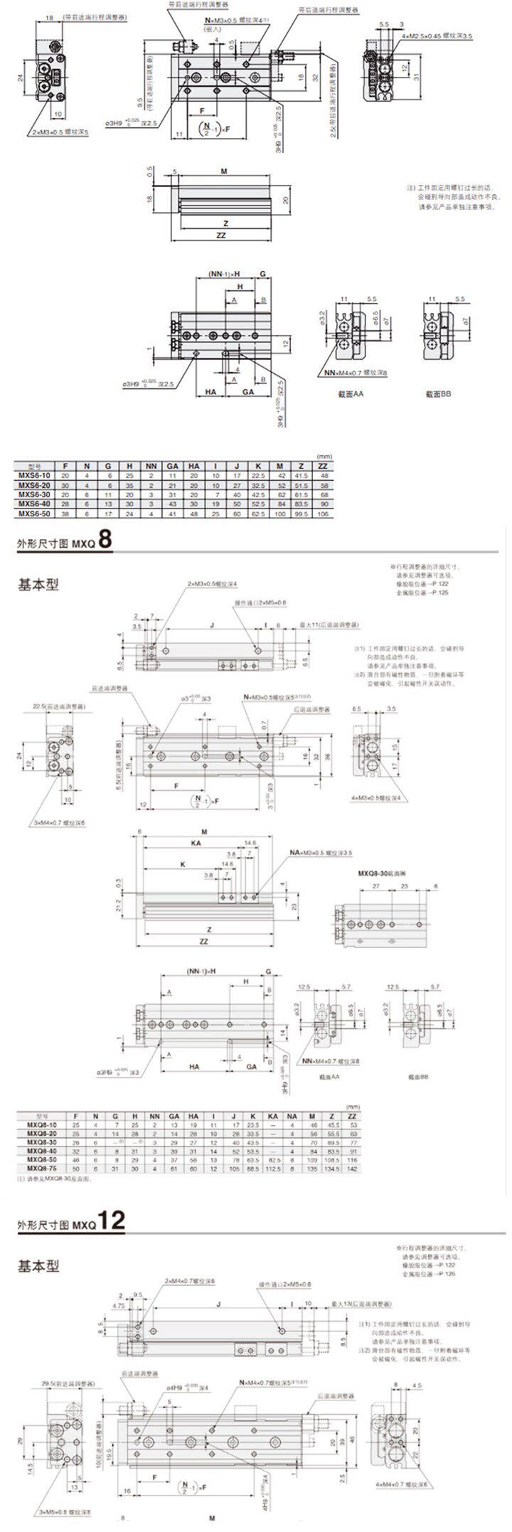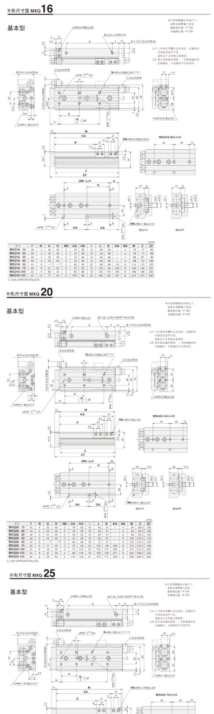 Небольшая точность линейная направляющая дорожка Пневматический слайд-резервуар MXQ6/8/12/16/20-30/40/50/75/100S