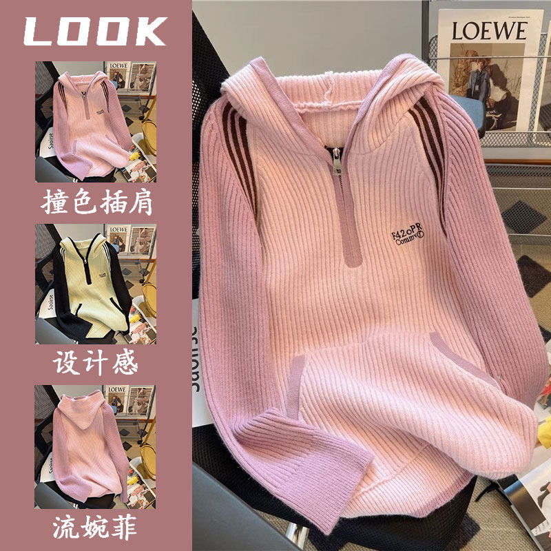 Демисезонный трикотажный свитер для влюбленных с капюшоном, этнический стиль, свободный крой