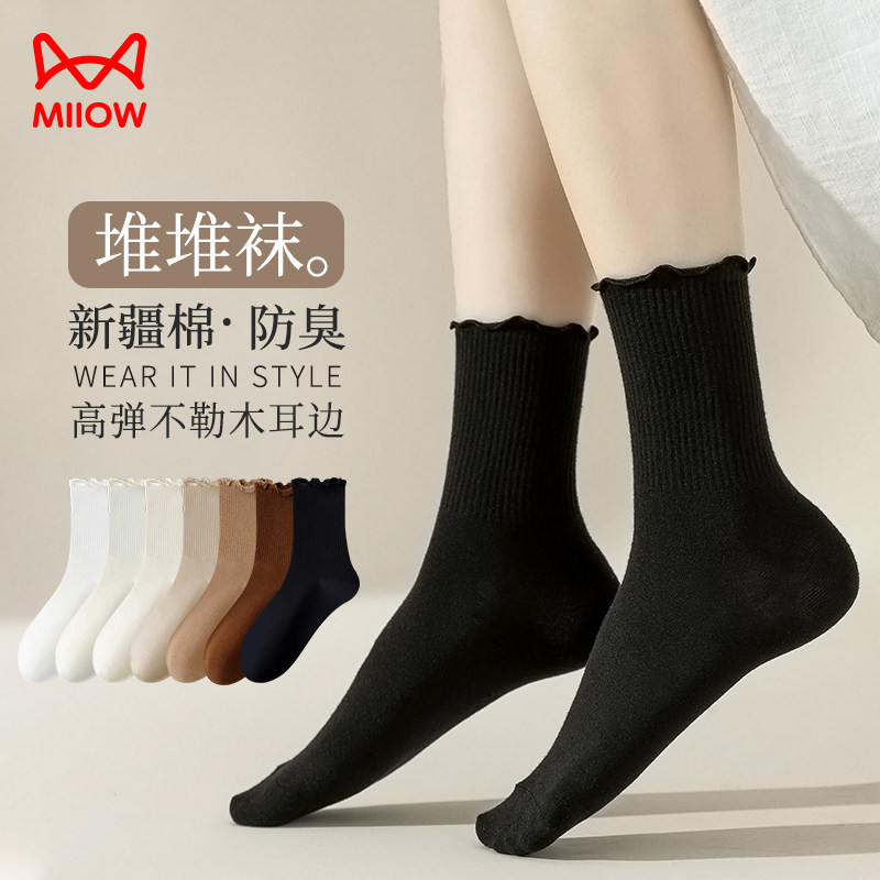 Осенние носки, черные демисезонные хлопковые гольфы, дезодорированные лоферы, средней длины