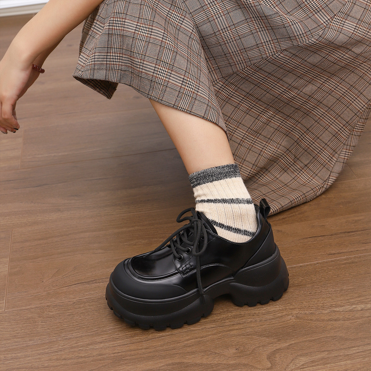 伯爵猫 Кожаная академия повседневная маленькая кожаная обувь 2024 весна новая мода Retro увеличил универсальное пухлое дно