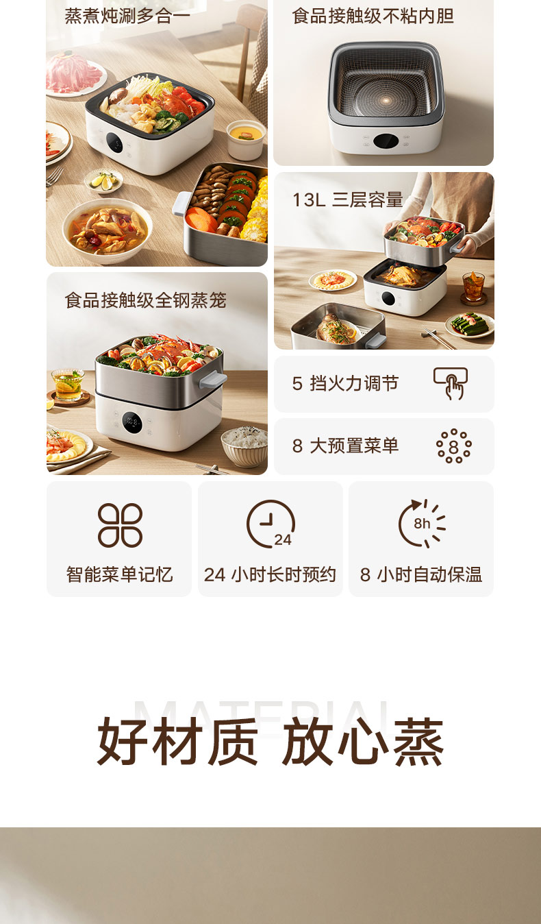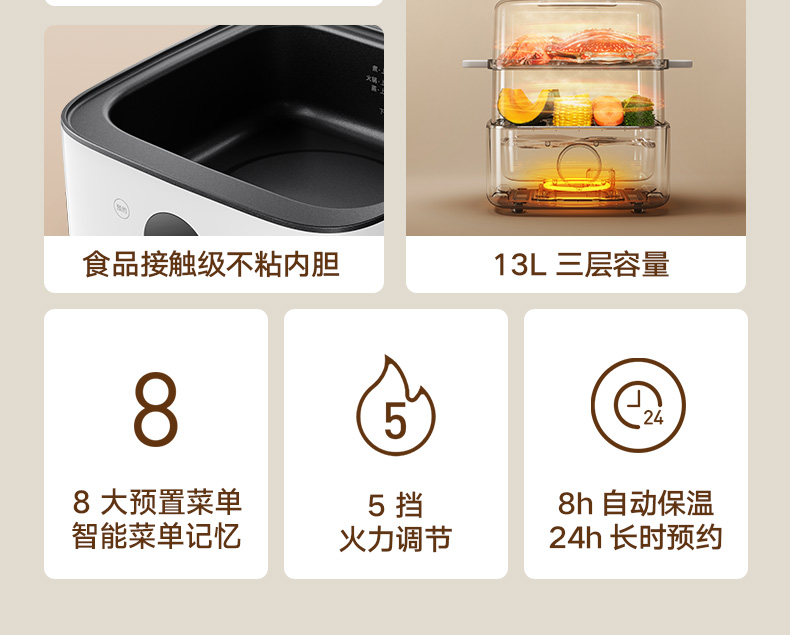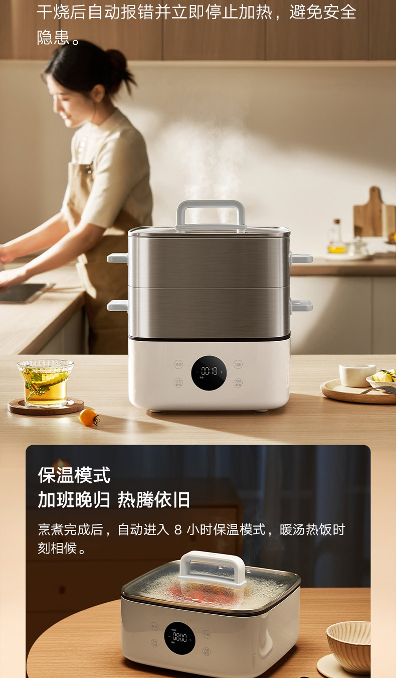 Xiaomi guanqimi Home Appliance Steamer 13L Machargefk Machine Quick Pot Electric Hot Pot Многофункциональный горшок с большими емкостью визуально визуальное мясо