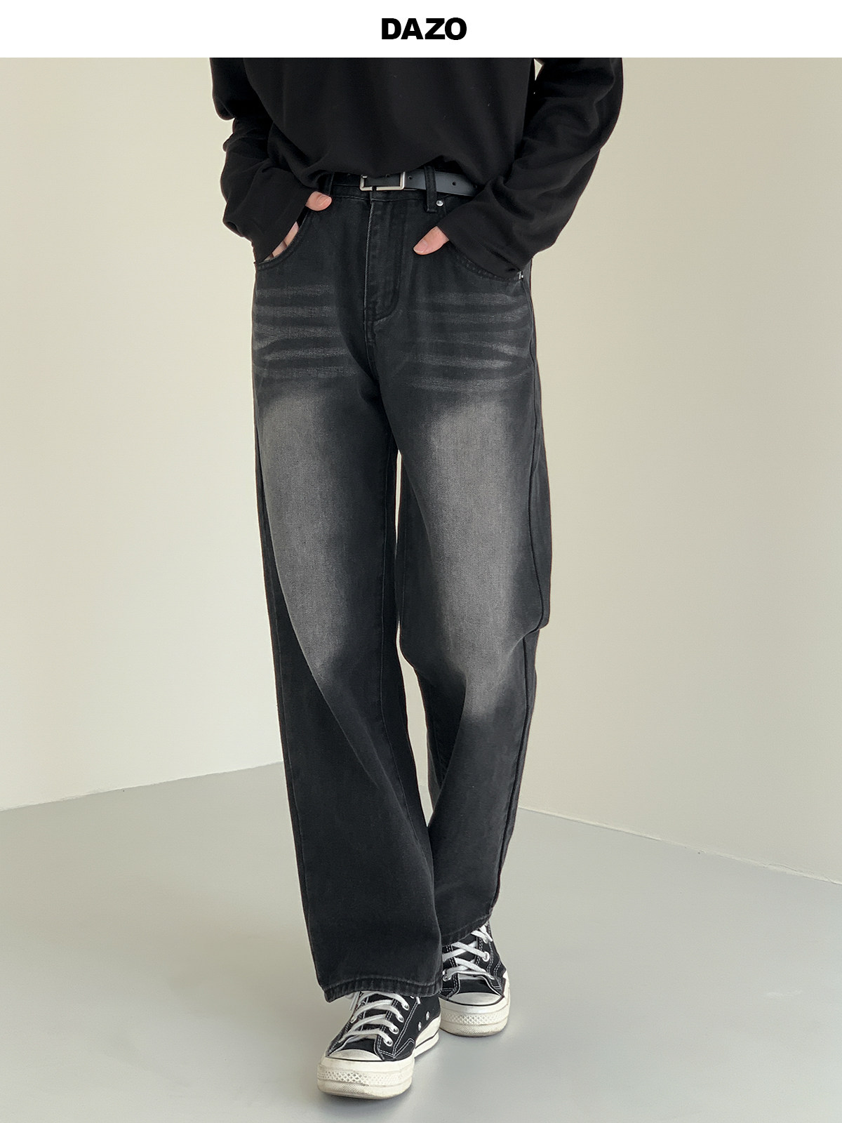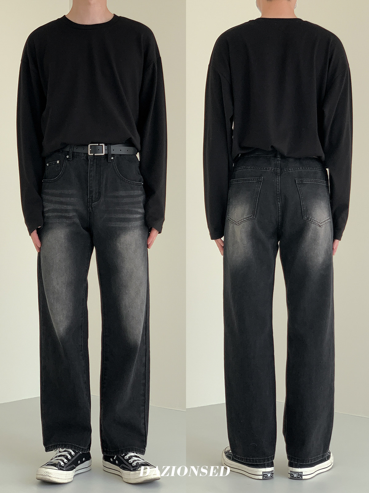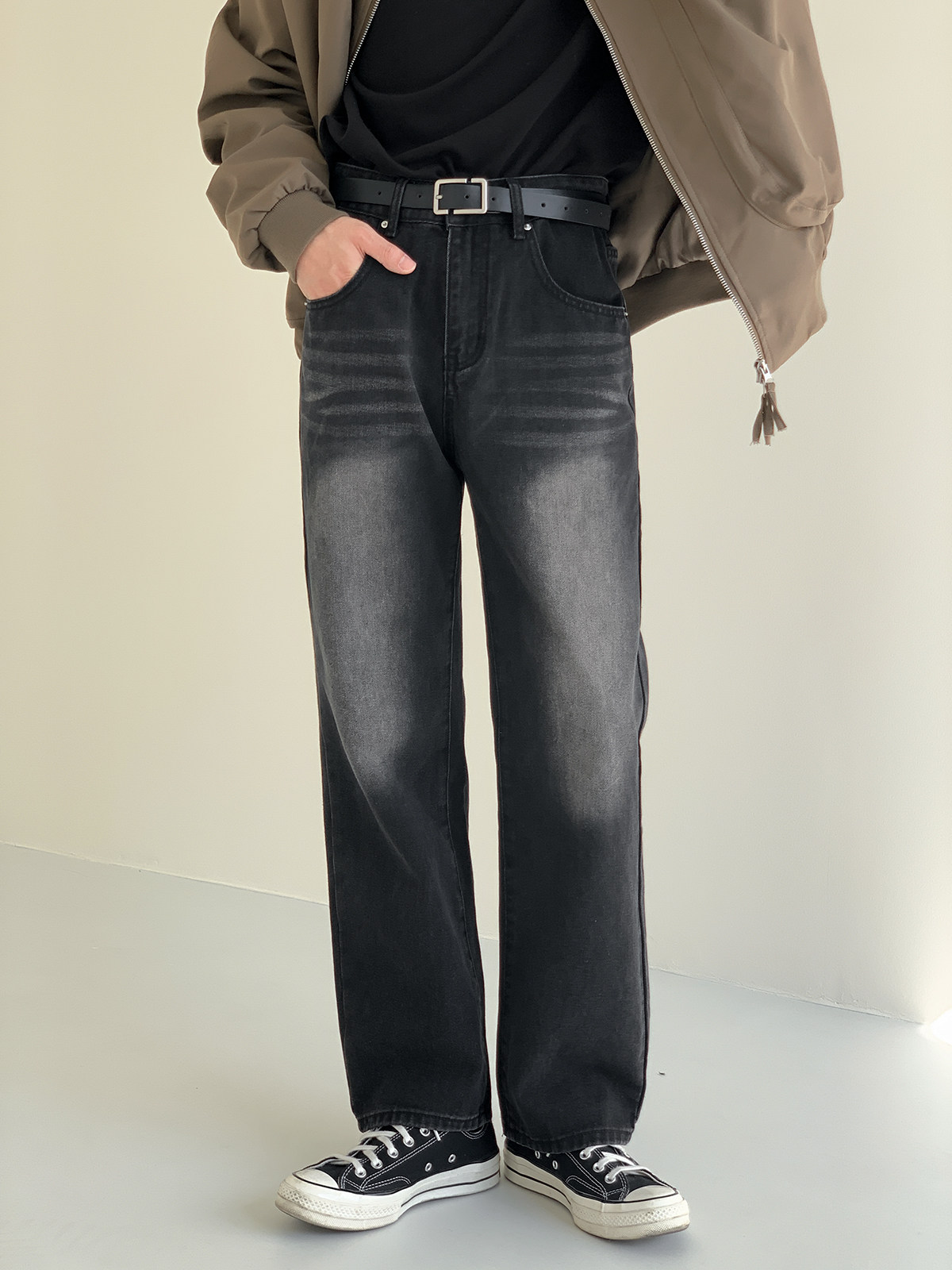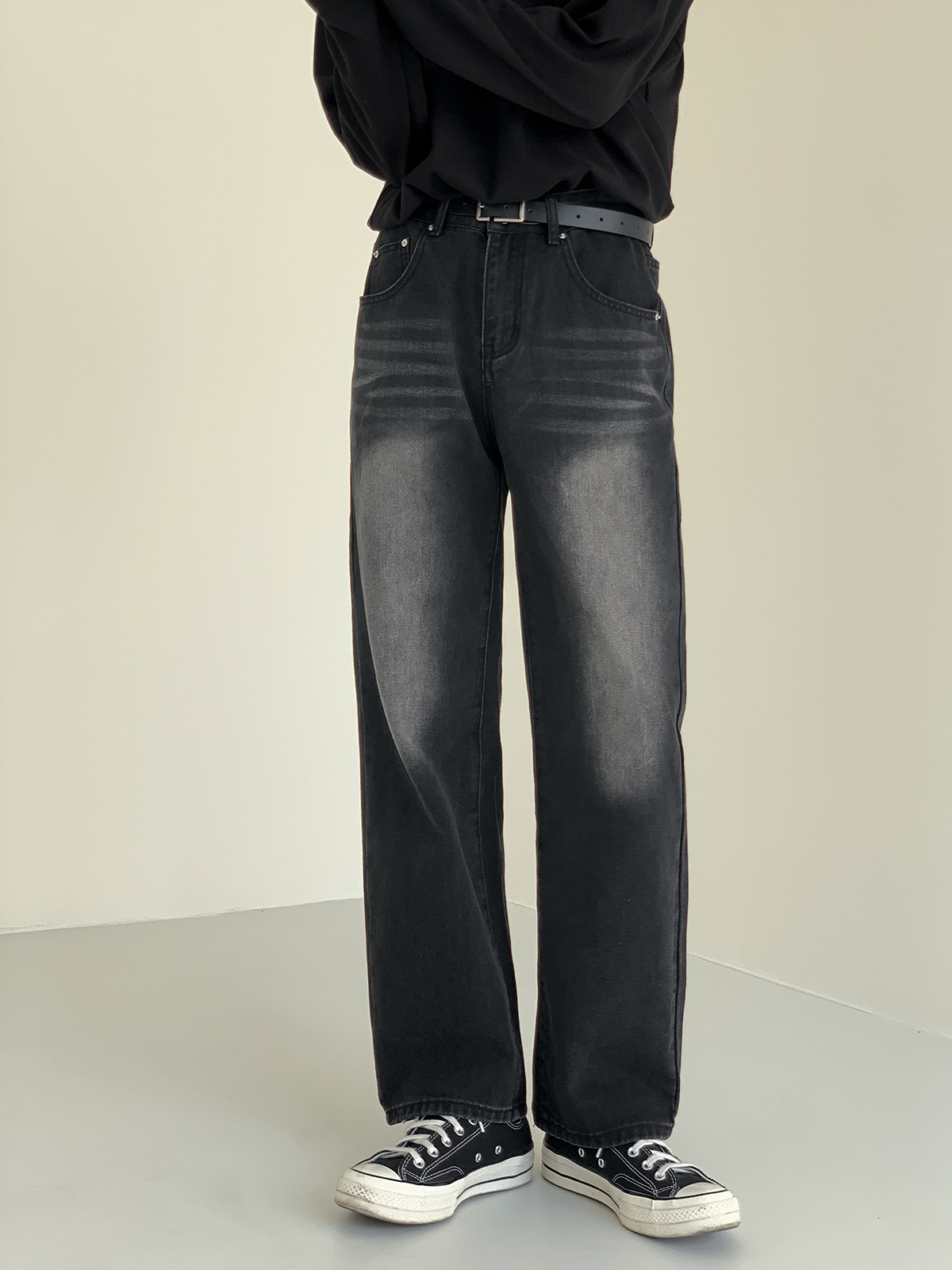 Черные джинсы, ретро штаны, свободный прямой крой, осенние, в корейском стиле