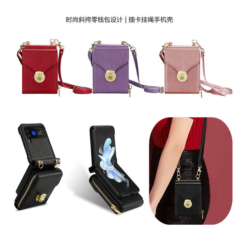 Samsung, совместимый GalaxyZFlip4, чехол для телефона, GalaxyZFlip3, сумка через плечо, картхолдер, Z Flip5, защита при падении