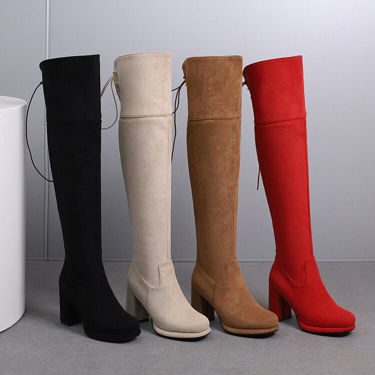 Замшевые желтые высокие сапоги, абрикосовые красные ботинки, большой размер