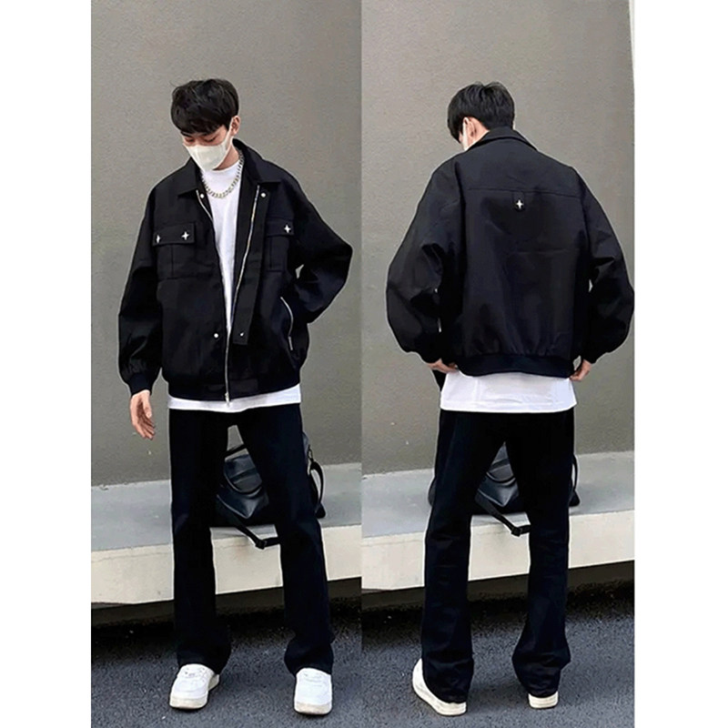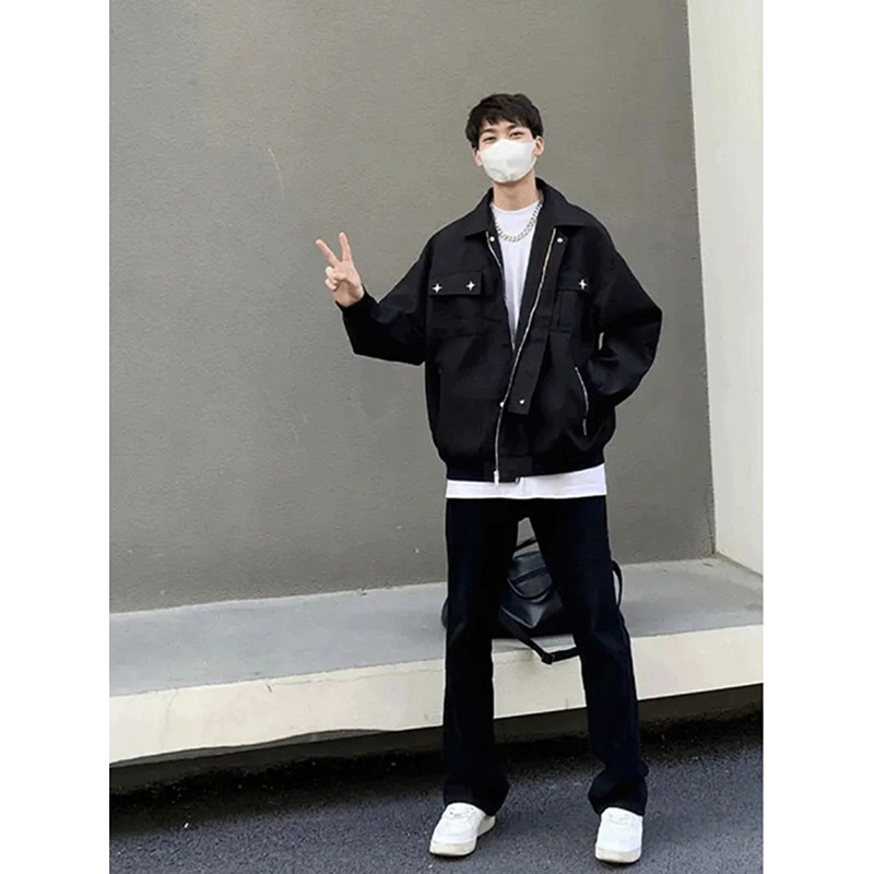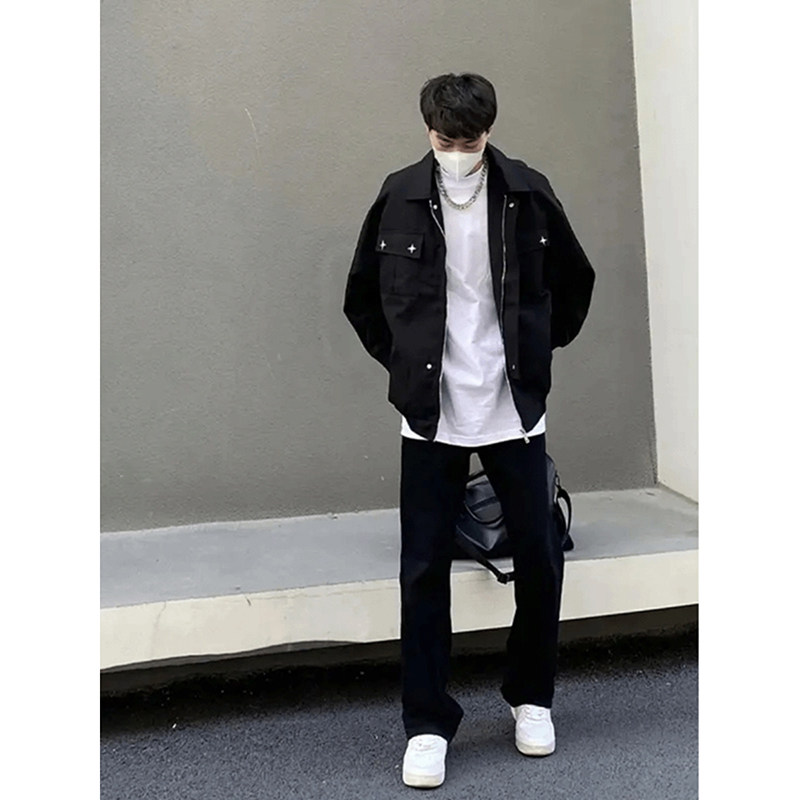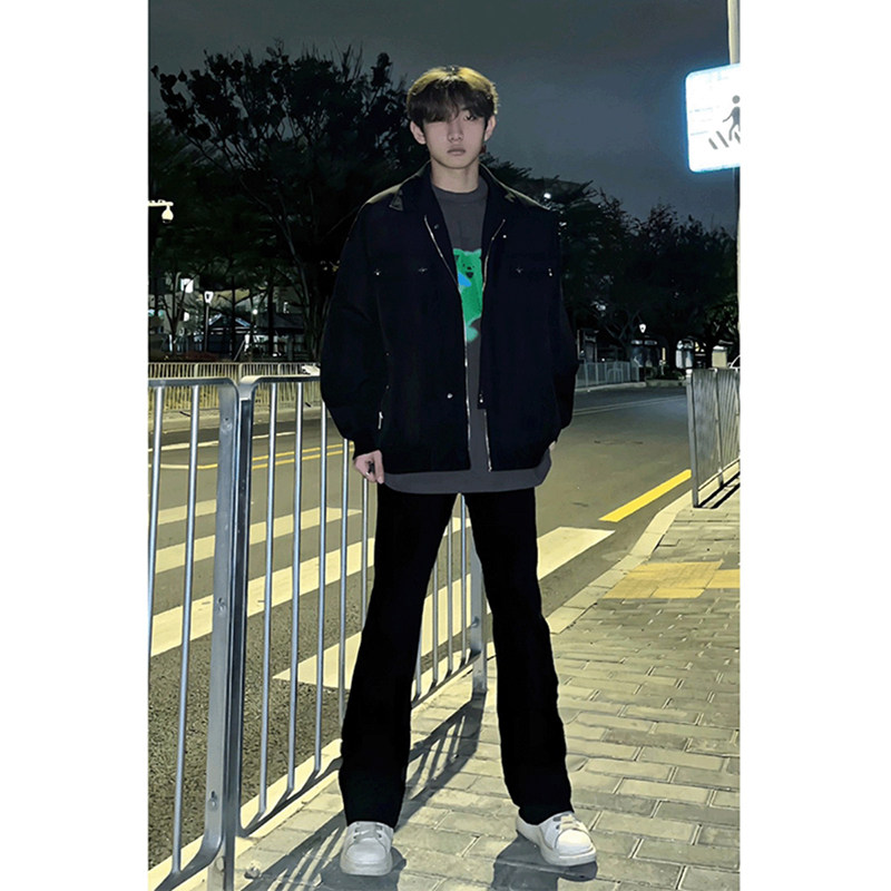 Черные джинсы, штаны, в американском стиле, изысканный стиль, свободный прямой крой