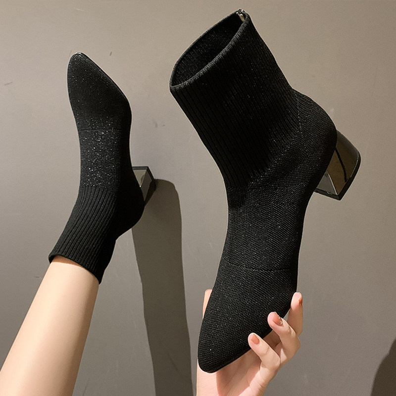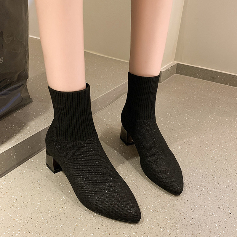 Martens, осенние носки, трикотажная эластичная высокая удобная обувь, короткие сапоги, в стиле Шанель