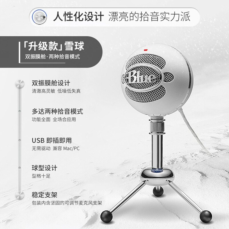 Logitech Blue Snowball Ice Big Snowball Microphone Microfacitor Microphone USB Live Game, чтобы начать петь черный