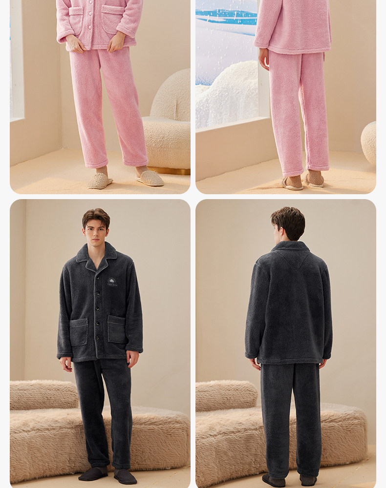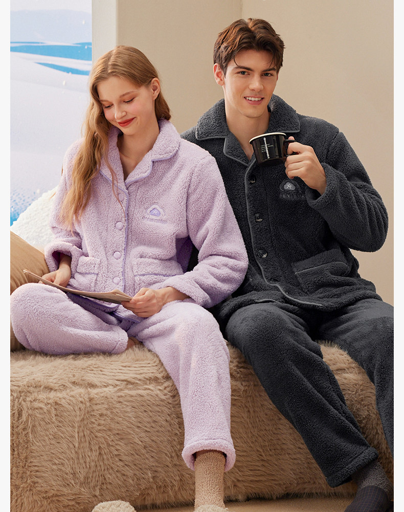 芬腾 Коралловая бархатная утепленная пижама, утепленный фланелевый удерживающий тепло комплект для отдыха, для влюбленных
