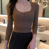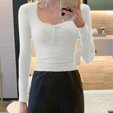 Сексуальный осенний эластичный базовый приятный телу лонгслив, облегающий крой