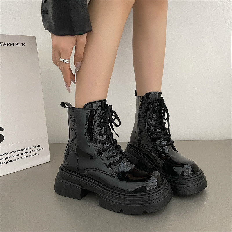 Martens, весенние короткие сапоги в английском стиле, черные ботинки на платформе, в британском стиле