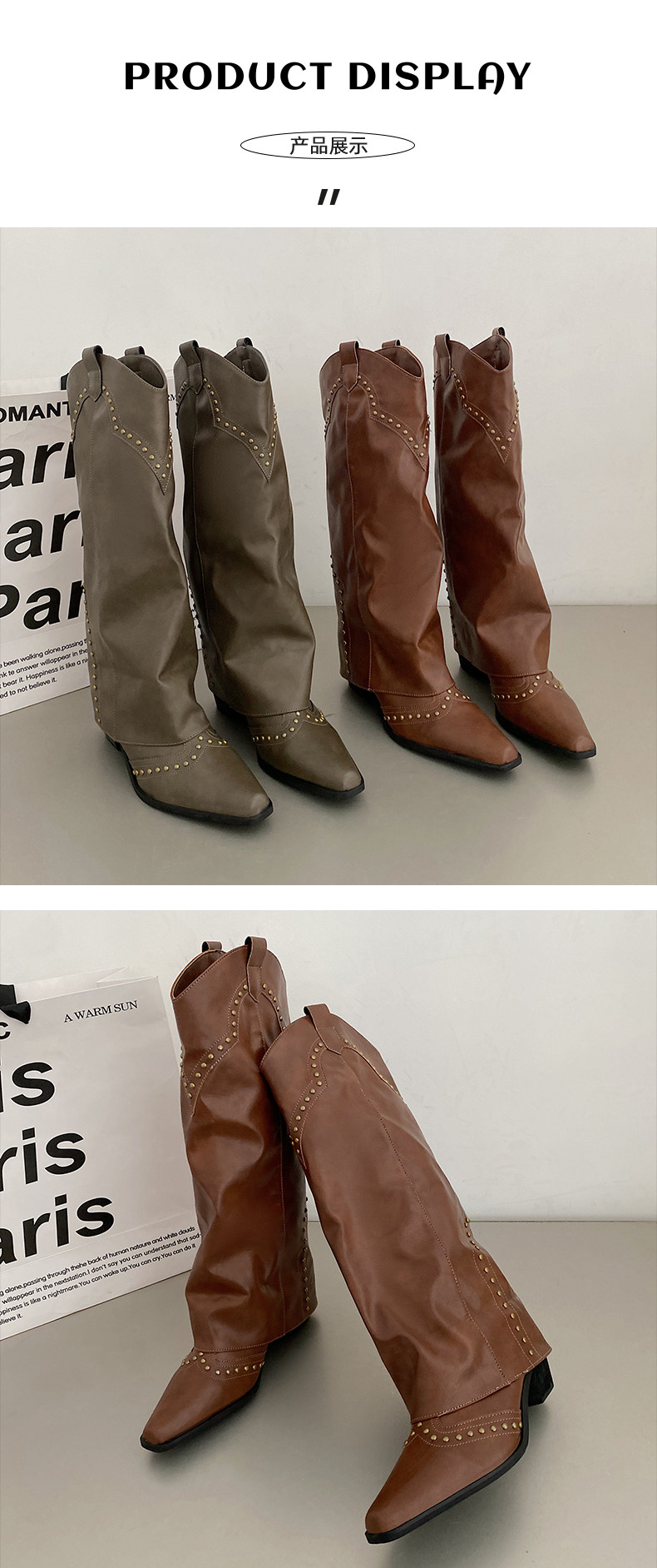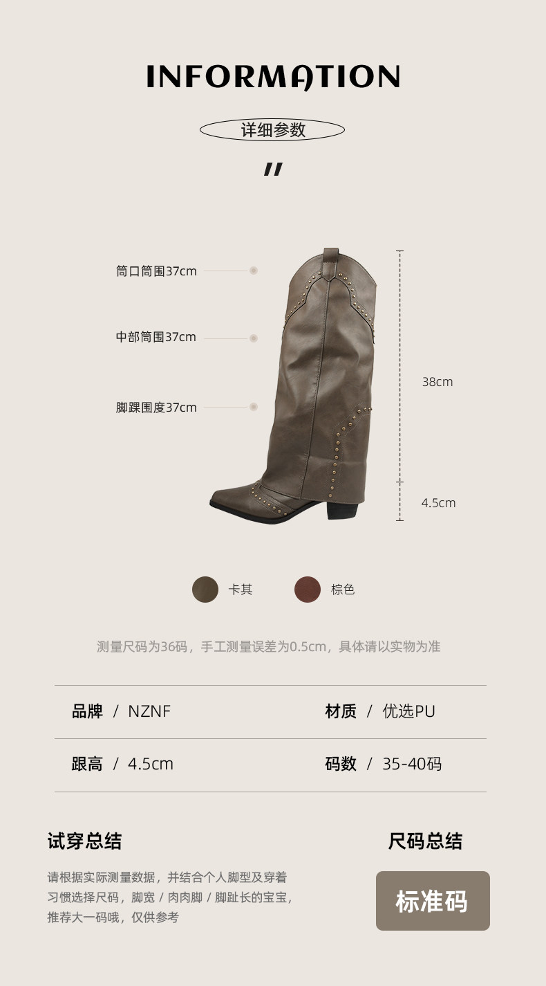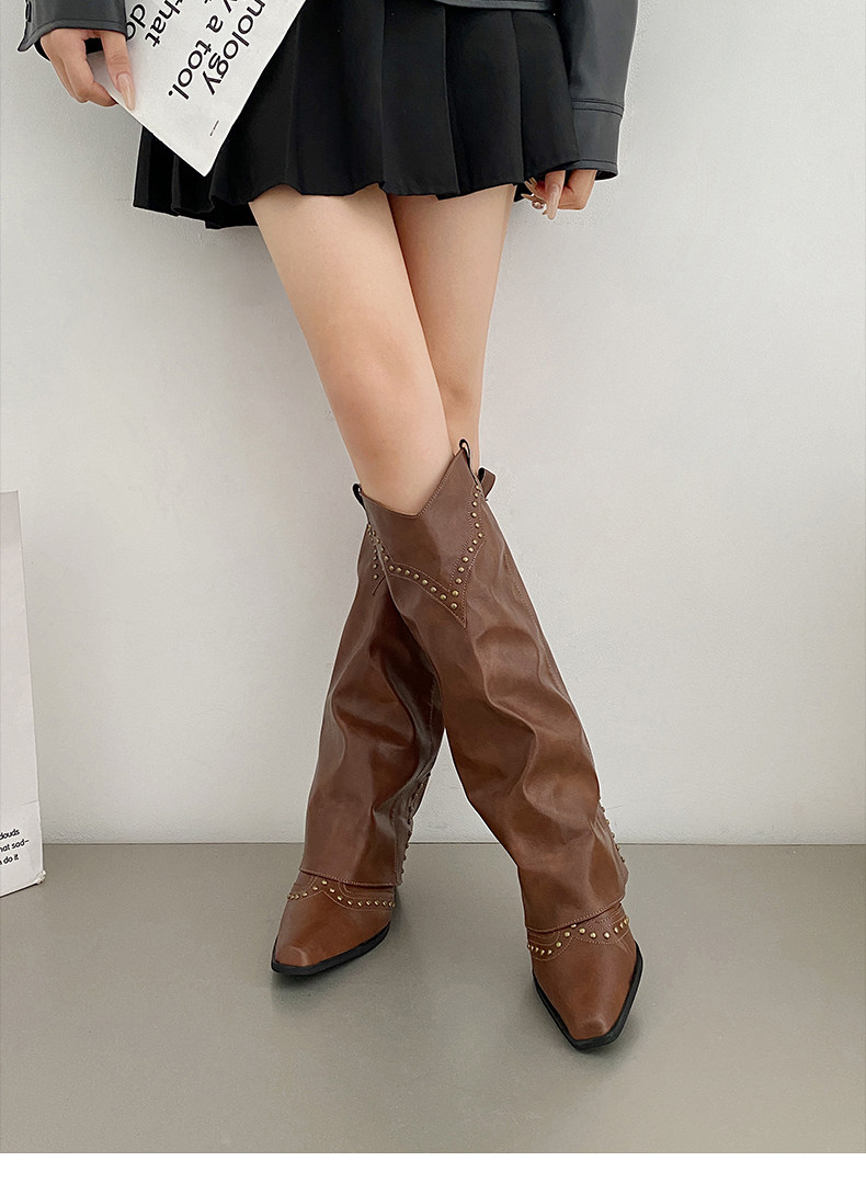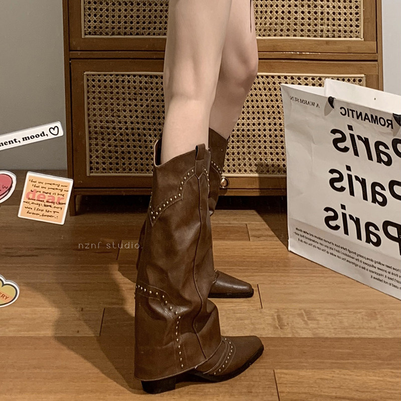 Коричневые джинсовые весенние ботинки с заостренным носом, высокие сапоги, в американском стиле, по фигуре