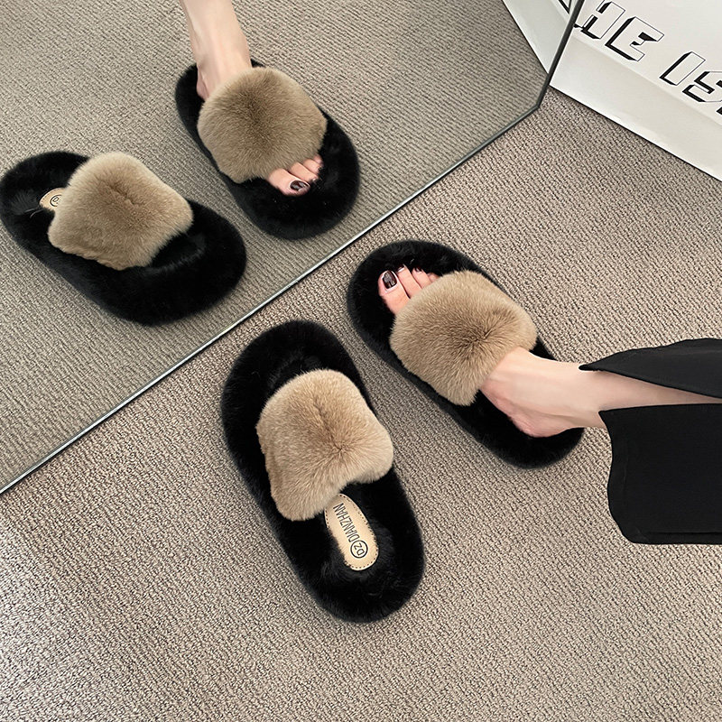 Взрывные волосы и тапочки для волос Женщины, носящие 2024 Новые европейские продукты с высоким содержанием чувства сетевая красная толстая плюшевая хлопковая плюша и осень.