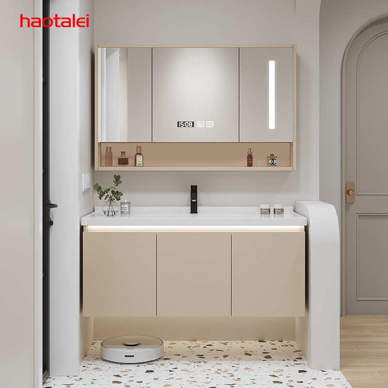 Новый кремовый шкаф для ванной комнаты хорошей жены.