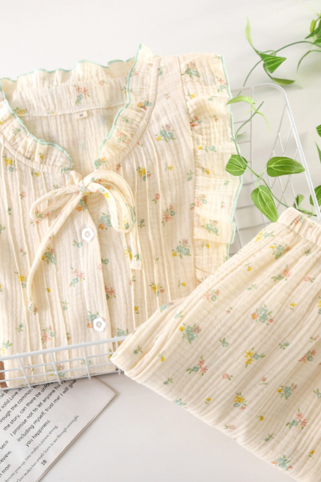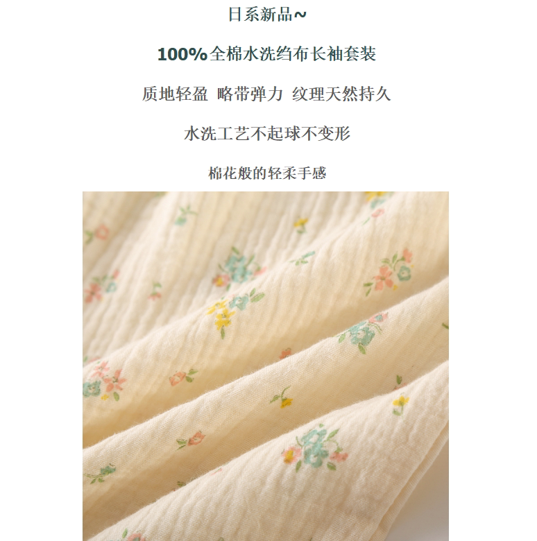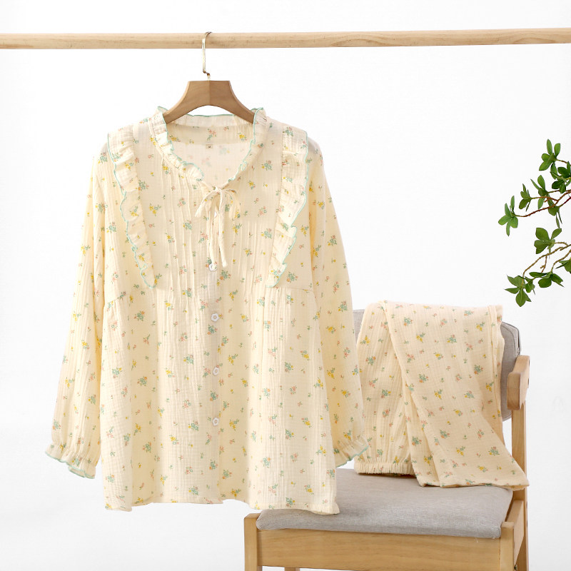 Японский милый хлопковый лонгслив, штаны, демисезонная пижама, цветочный принт, из хлопка и льна