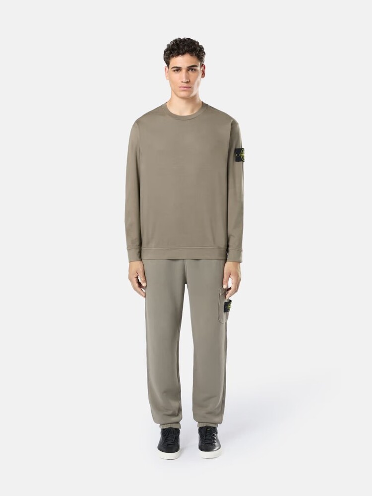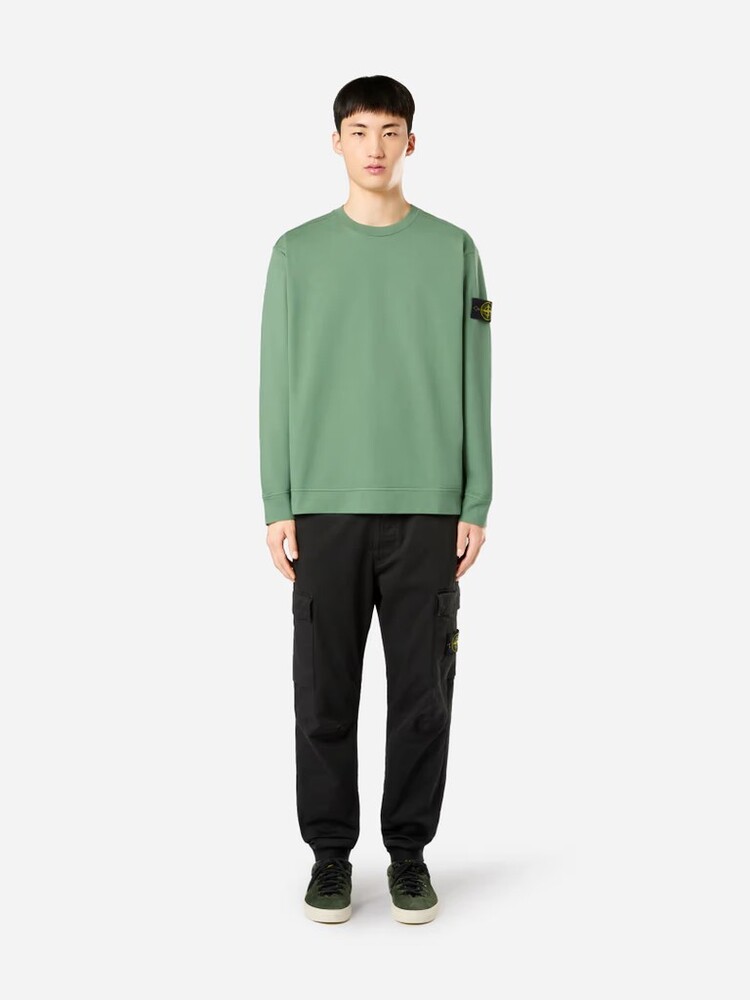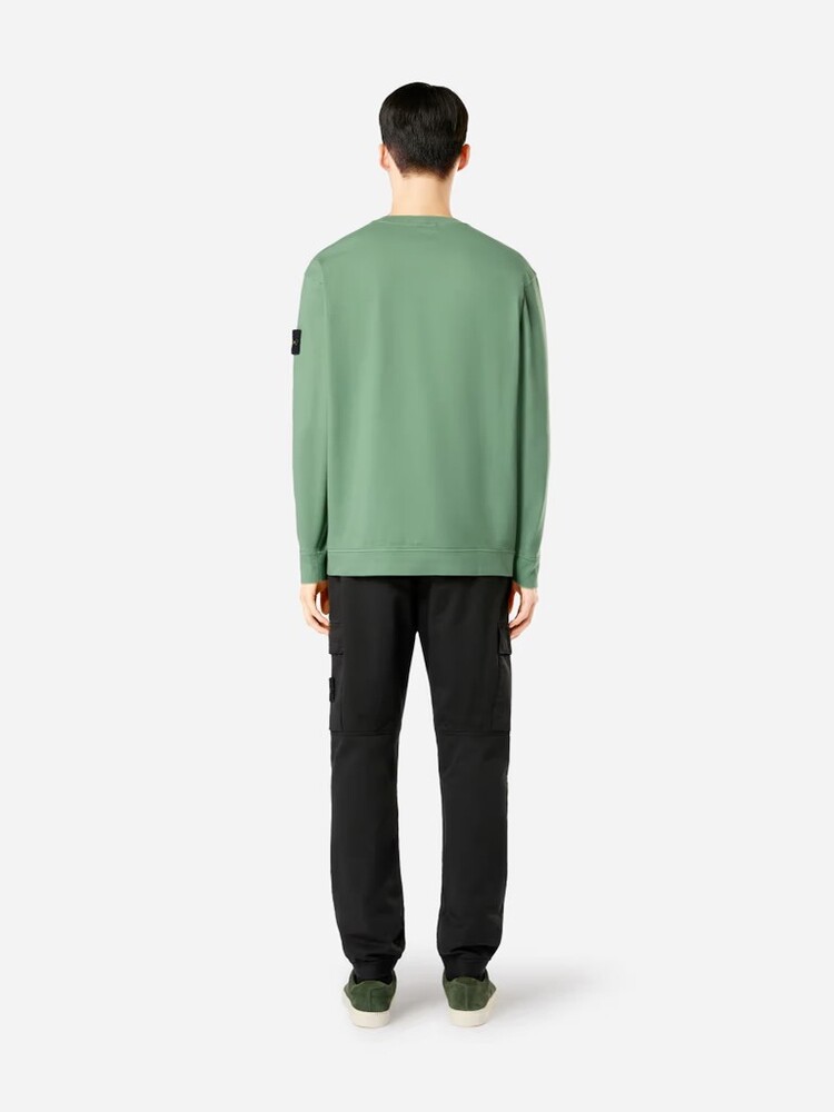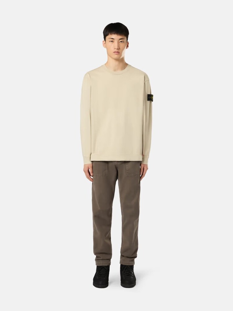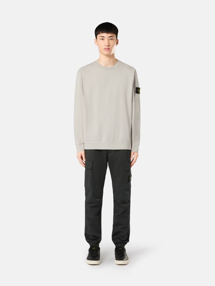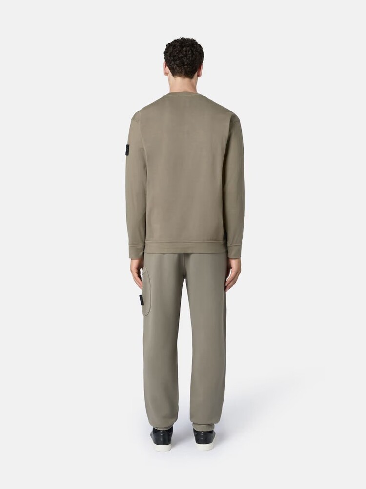 - Толстовка с круглым вырезом из плотного хлопкового трикотажа.Крашение одежды.Ребристый вырез.Герб Stone Island на левом рукаве.Простые манжеты и нижние бретели.Регулярная посадка.Незаконченный подол.