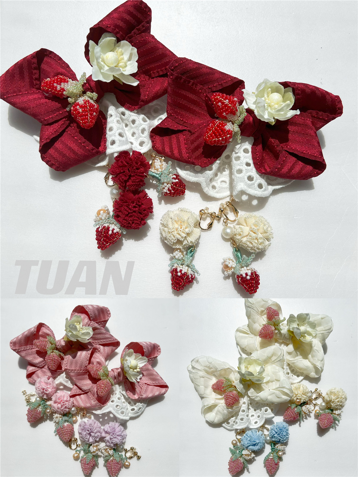 Элегантная клубника с бусинами, заколка для волос, стиль Лолита, (в наличии на складе)