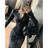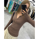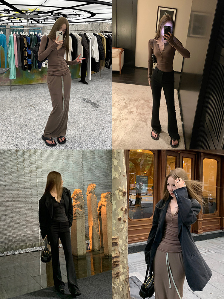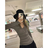 Xzichic Базовый приятный телу осенний эластичный лонгслив, высокий воротник, 2023, облегающий крой, V-образный вырез