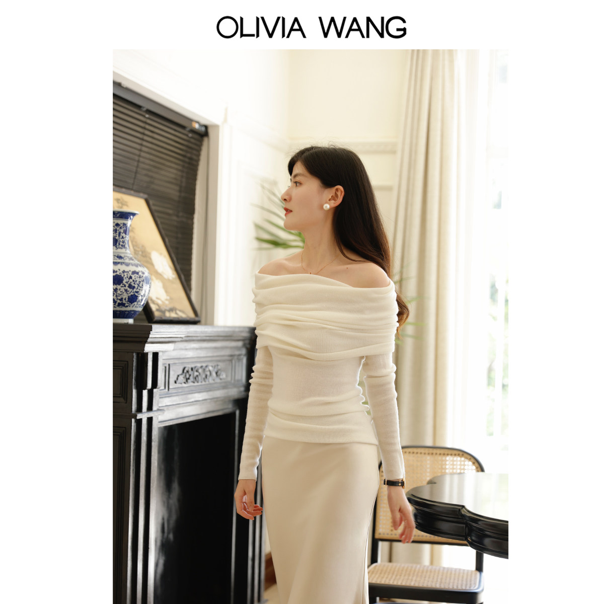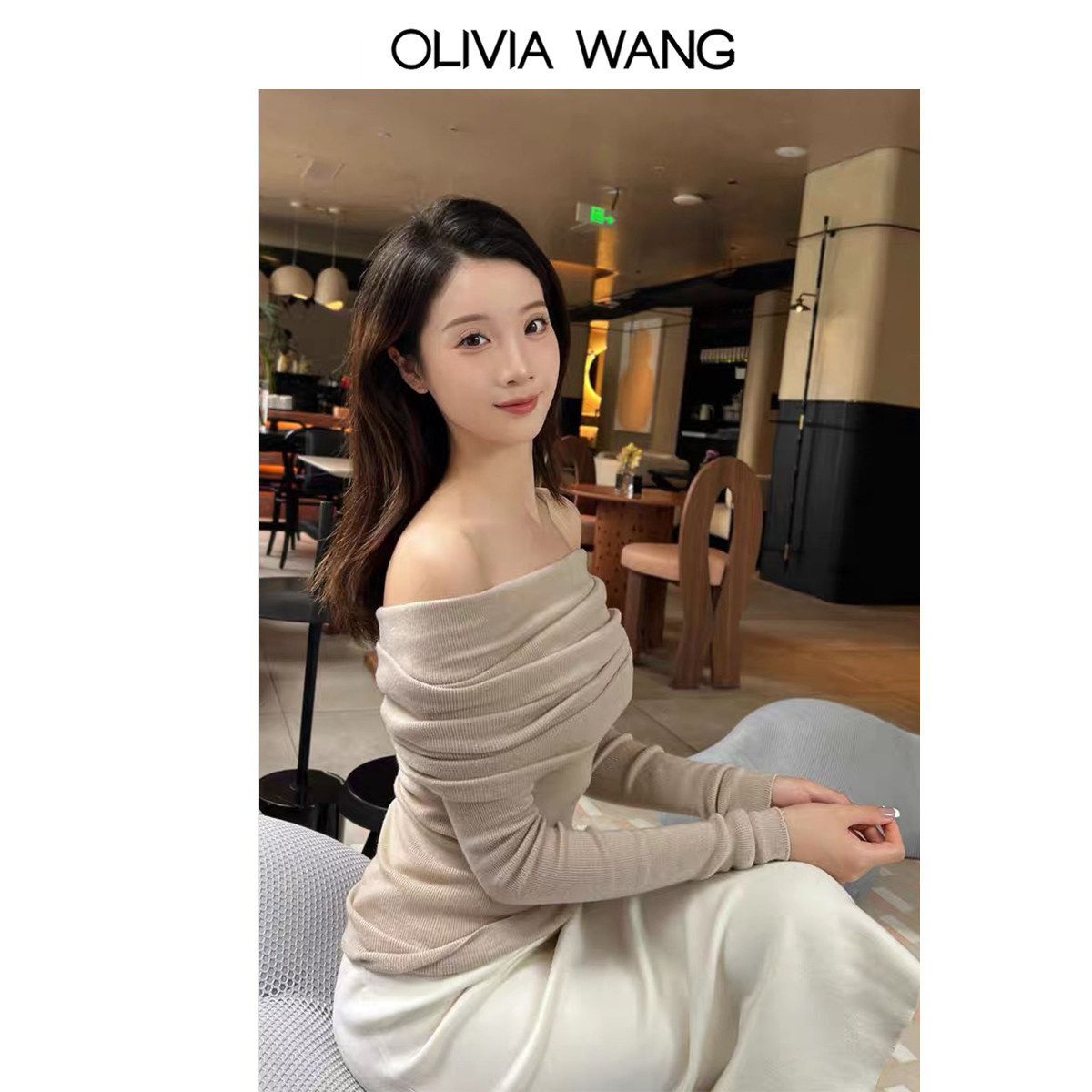 Весенний шерстяной свитер, базовый приятный телу ростомер, открытые плечи, облегающий крой, изысканный стиль