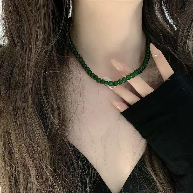 Брендовое небольшое дизайнерское зеленое стеклянное модное ожерелье из жемчуга, универсальная цепочка до ключиц, тренд сезона, изысканный стиль