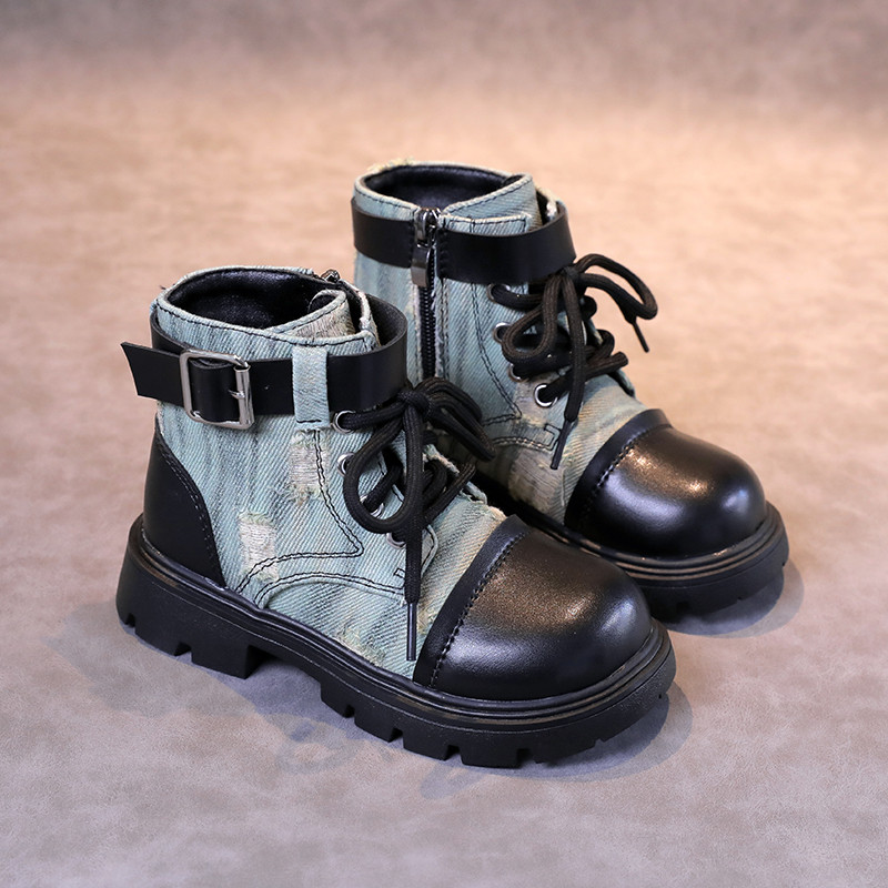 Martens, детские джинсовые весенние ботинки, демисезонные короткие сапоги для мальчиков