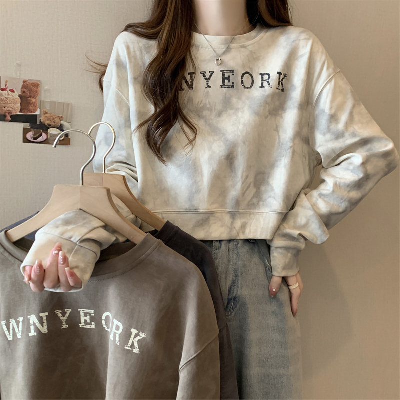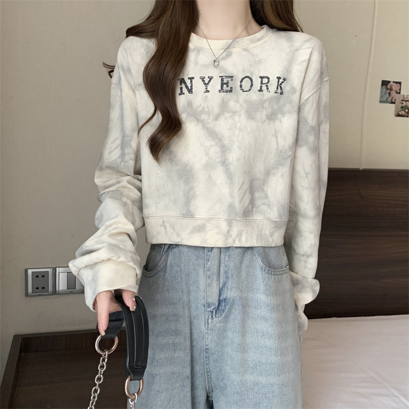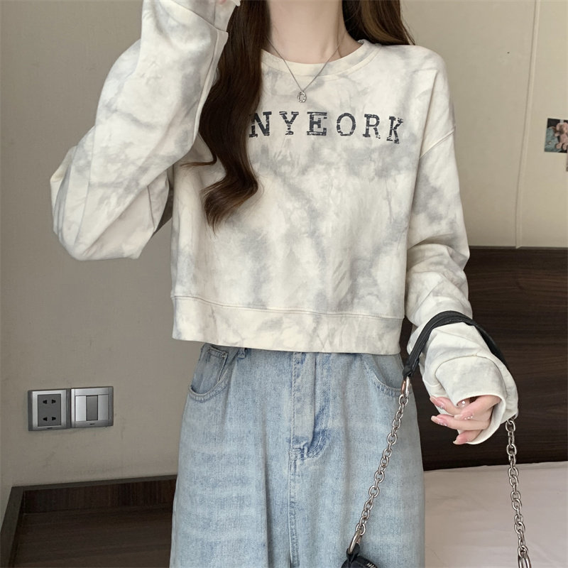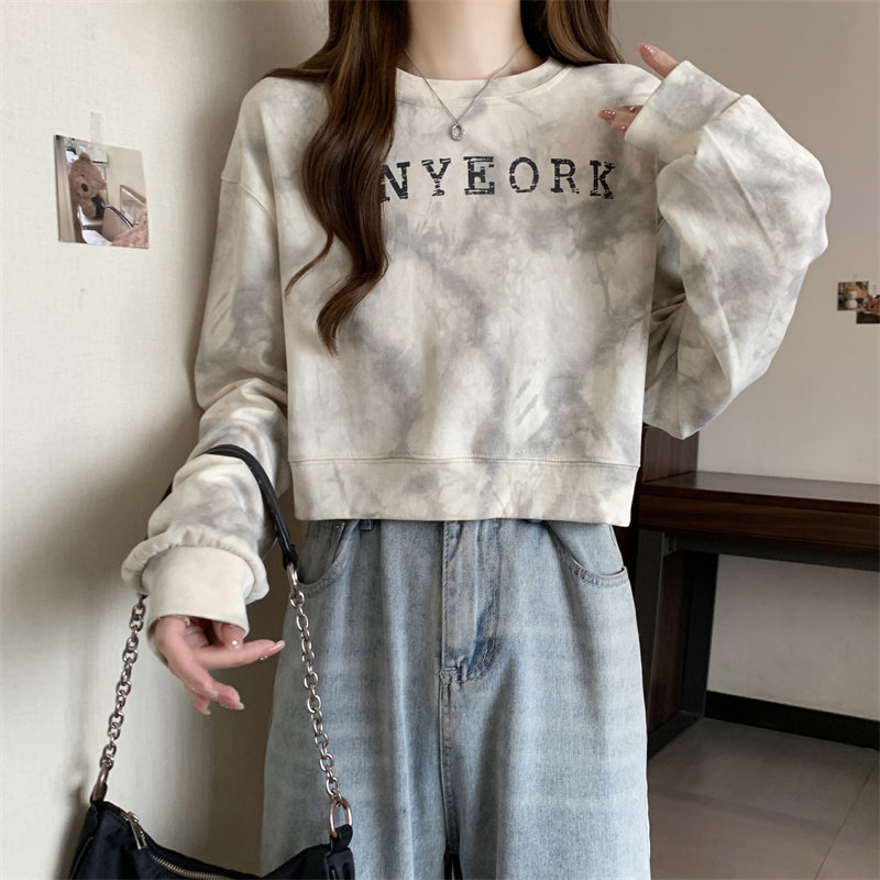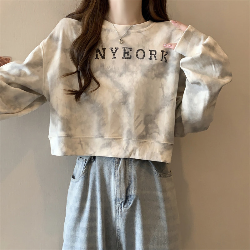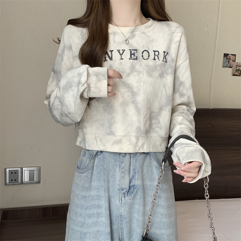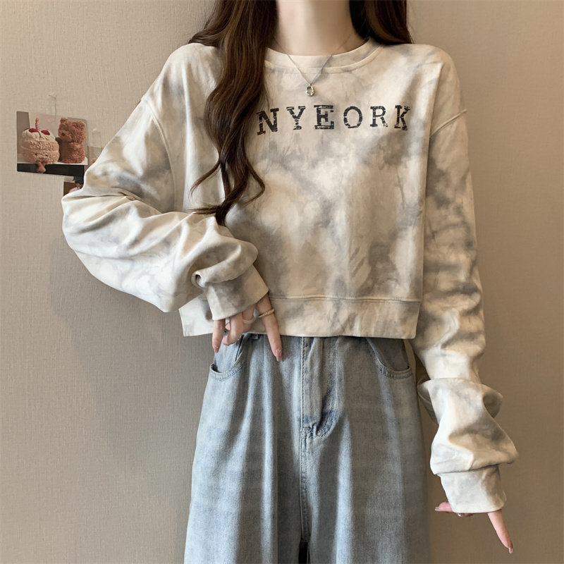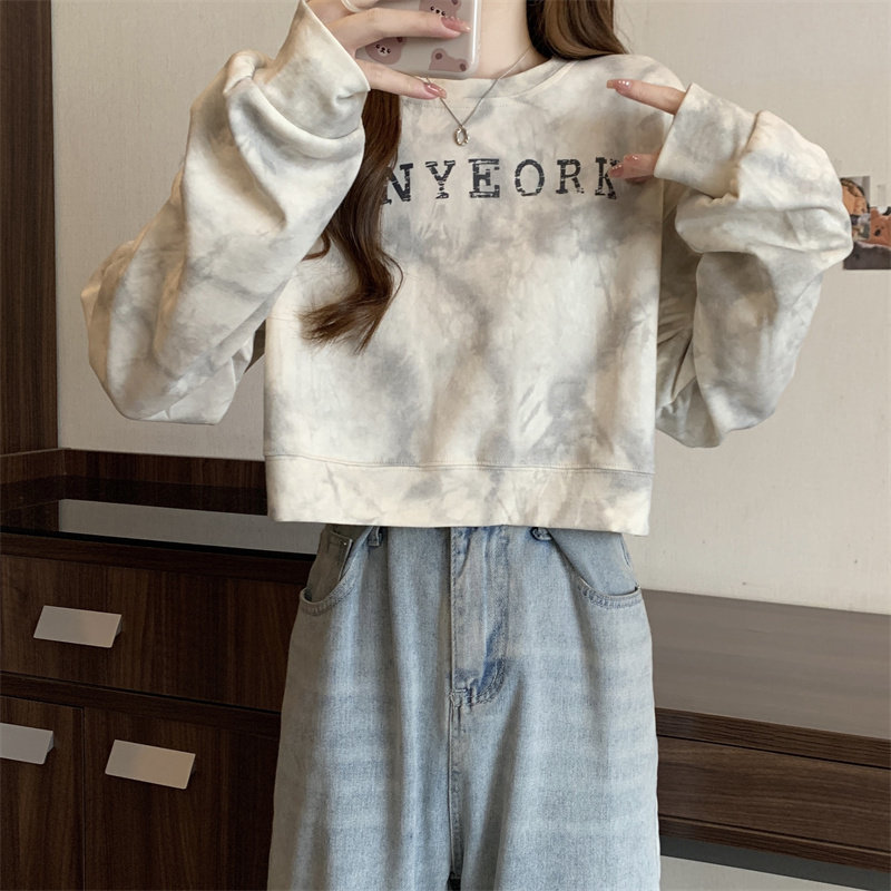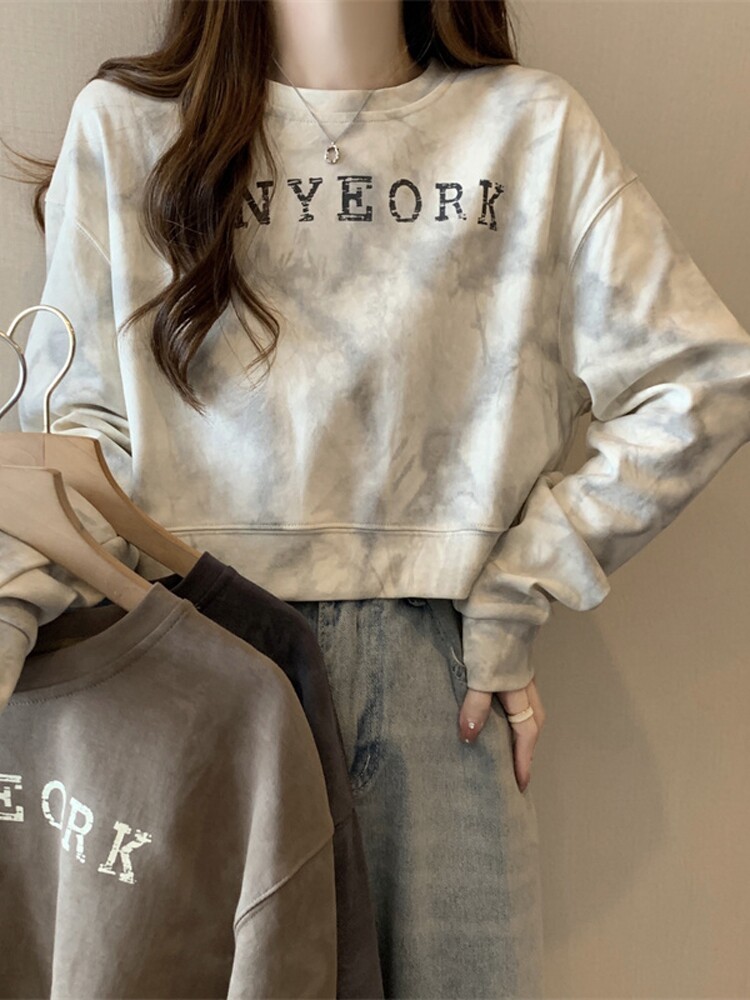 Негабаритные толстовки с принтом тай-дай для женщин, новинка 2025 года, популярный стиль, короткий весенне-осенний модный топ со свободной талией, круглым вырезом и толстым принтом