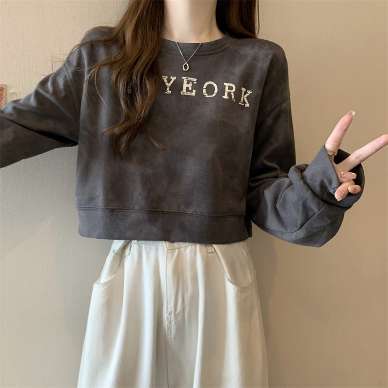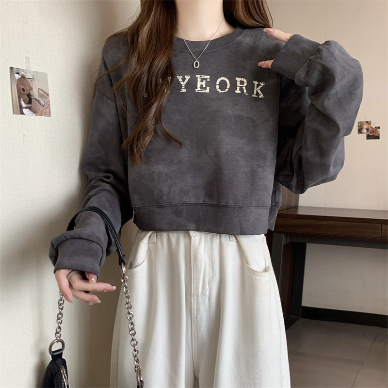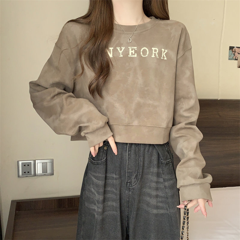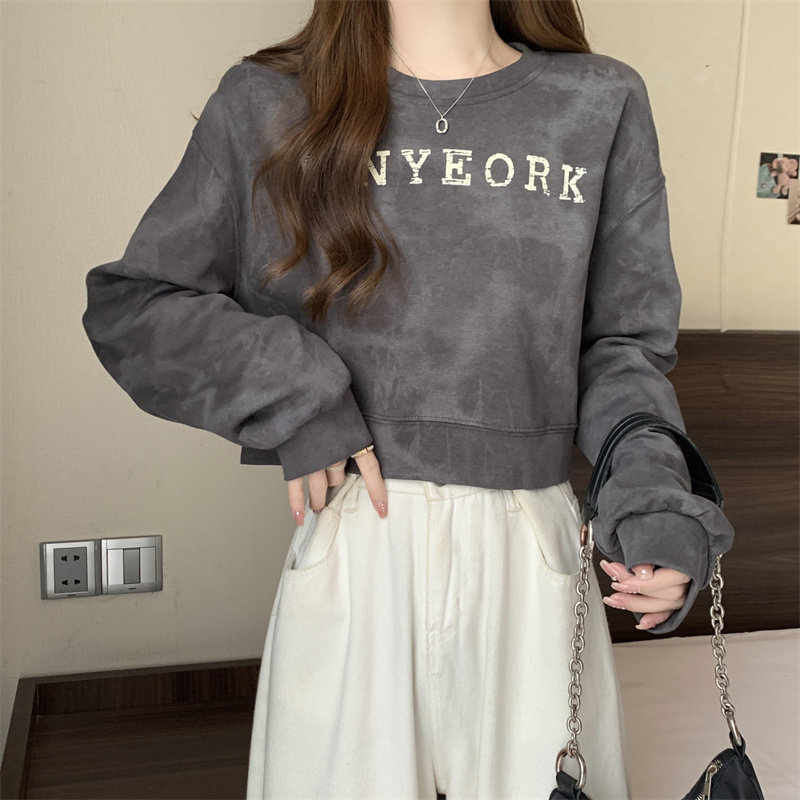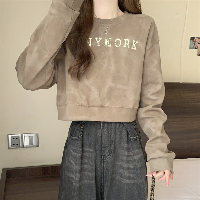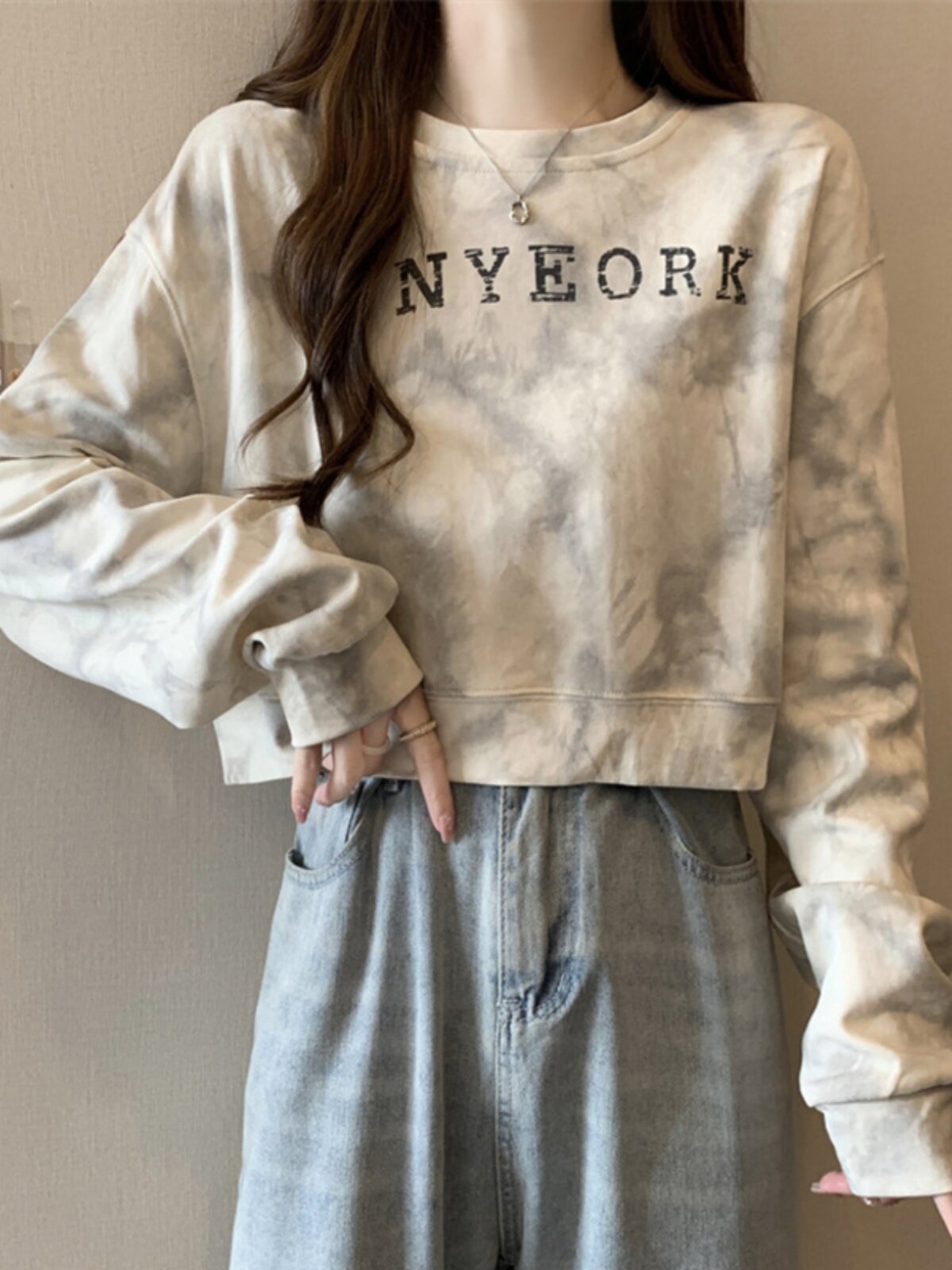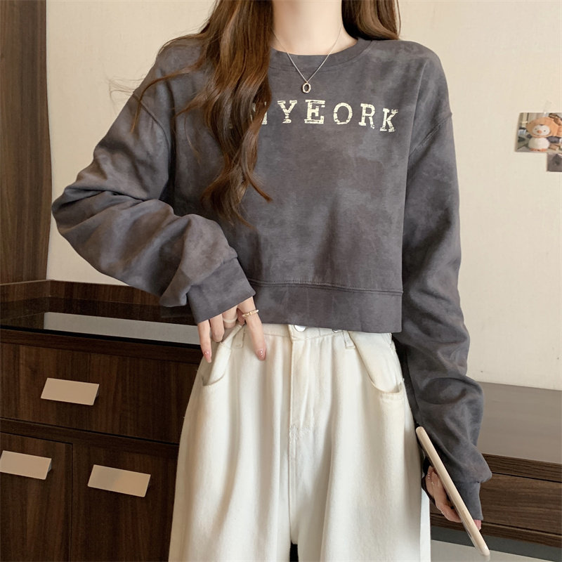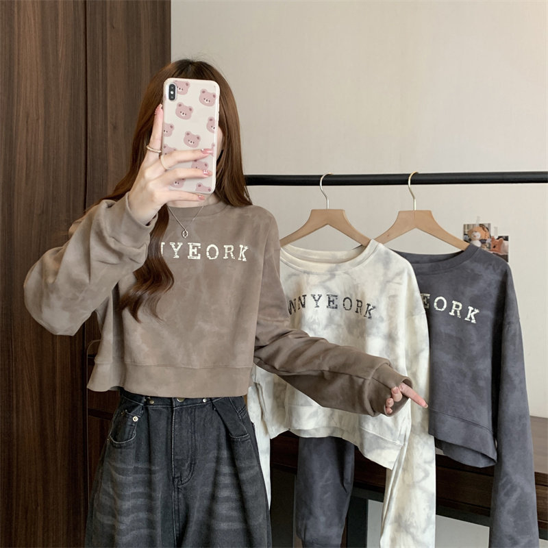 Негабаритные толстовки с принтом тай-дай для женщин, новинка 2025 года, популярный стиль, короткий весенне-осенний модный топ со свободной талией, круглым вырезом и толстым принтом