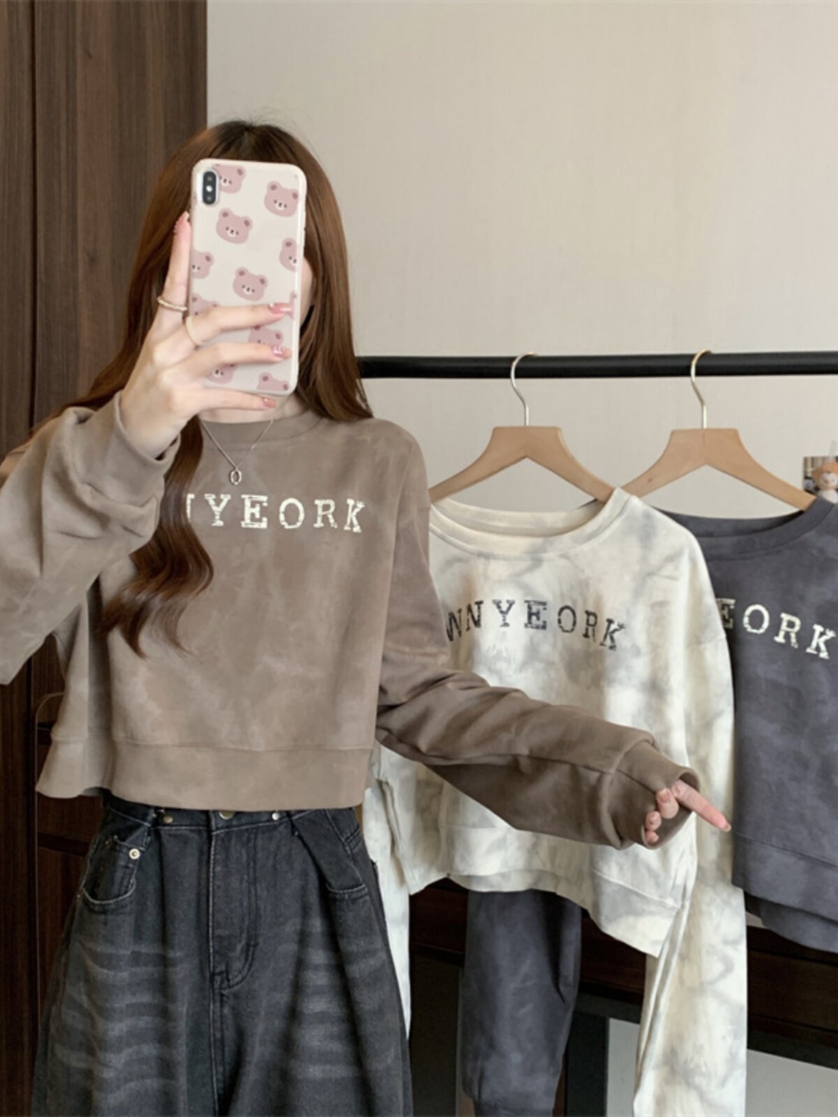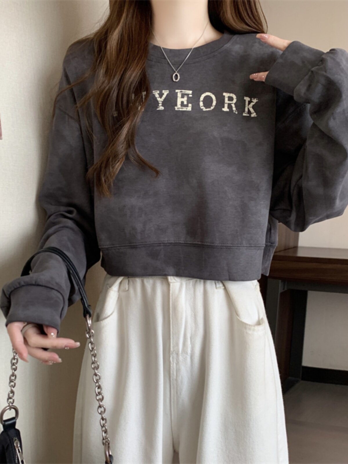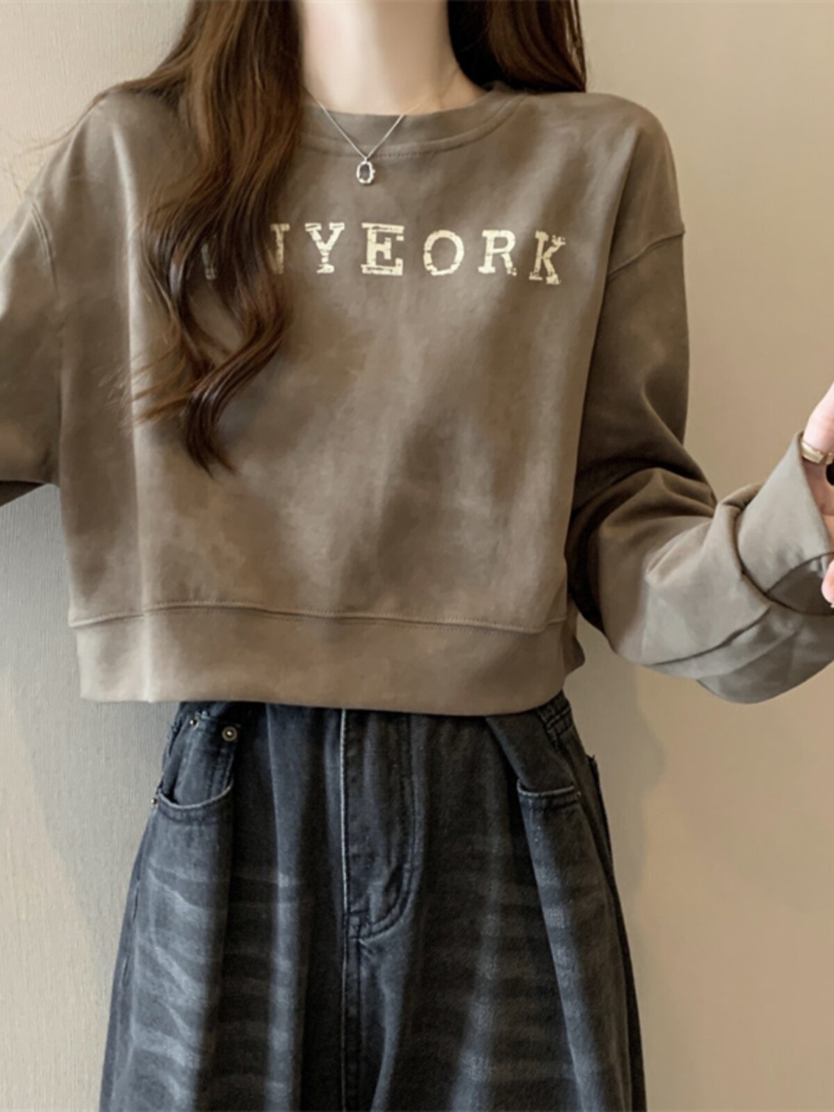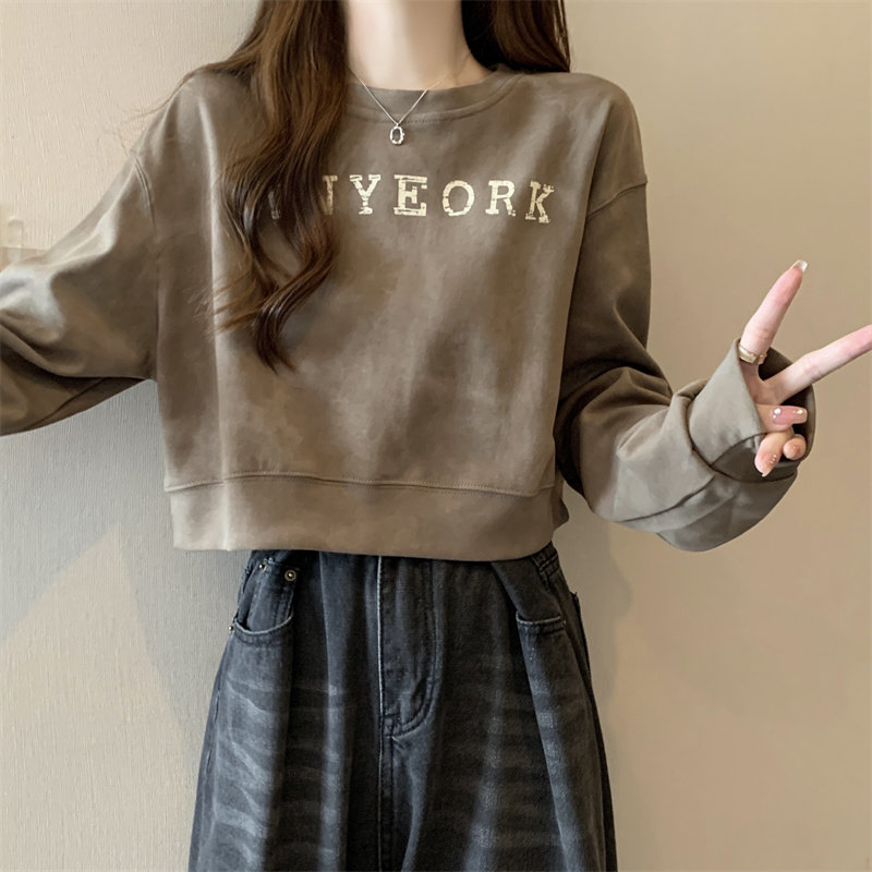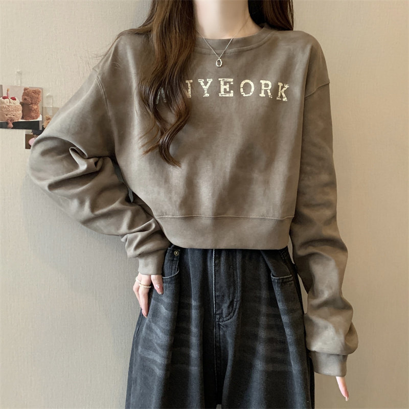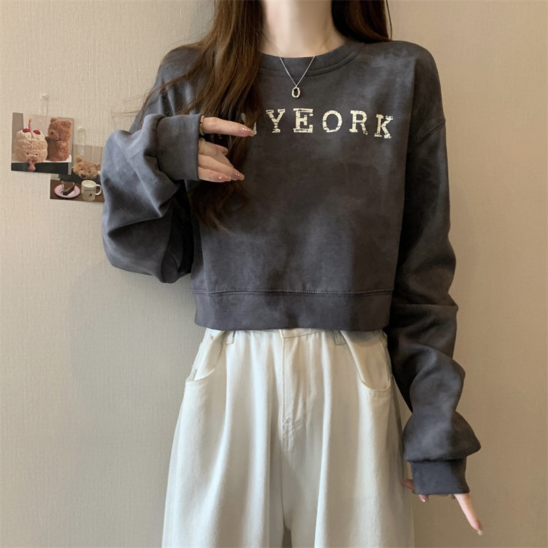Негабаритные толстовки с принтом тай-дай для женщин, новинка 2025 года, популярный стиль, короткий весенне-осенний модный топ со свободной талией, круглым вырезом и толстым принтом