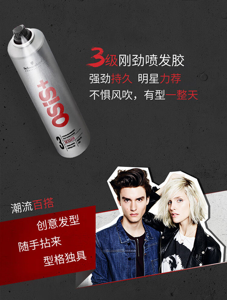 Schwarzkopf, мужской лак для волос с сухим распылением, челка, воск, придает объем