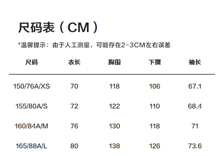 | Размер: | 150/76A/XS, 155/80A/S, 160/84A/M, 165/88A/L |