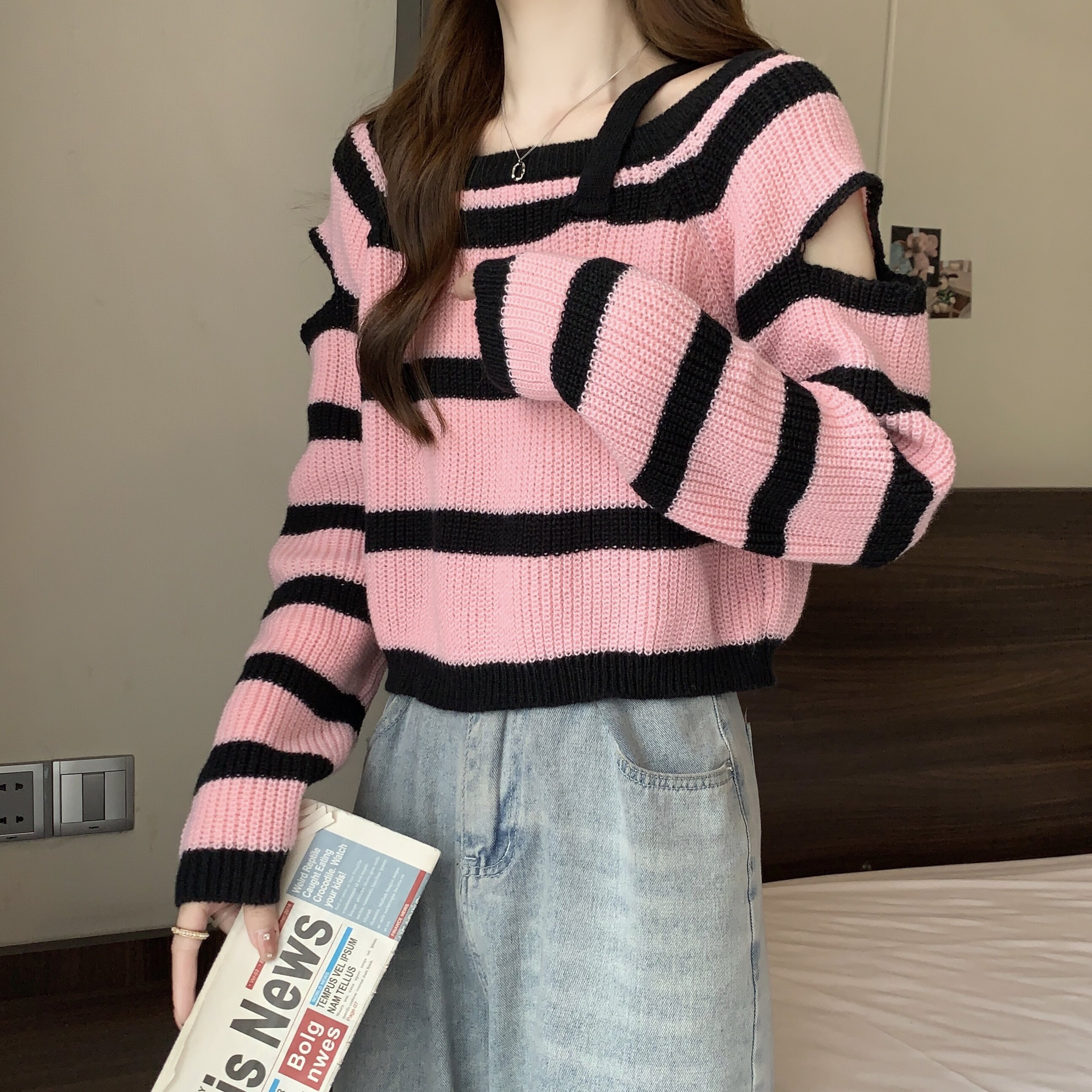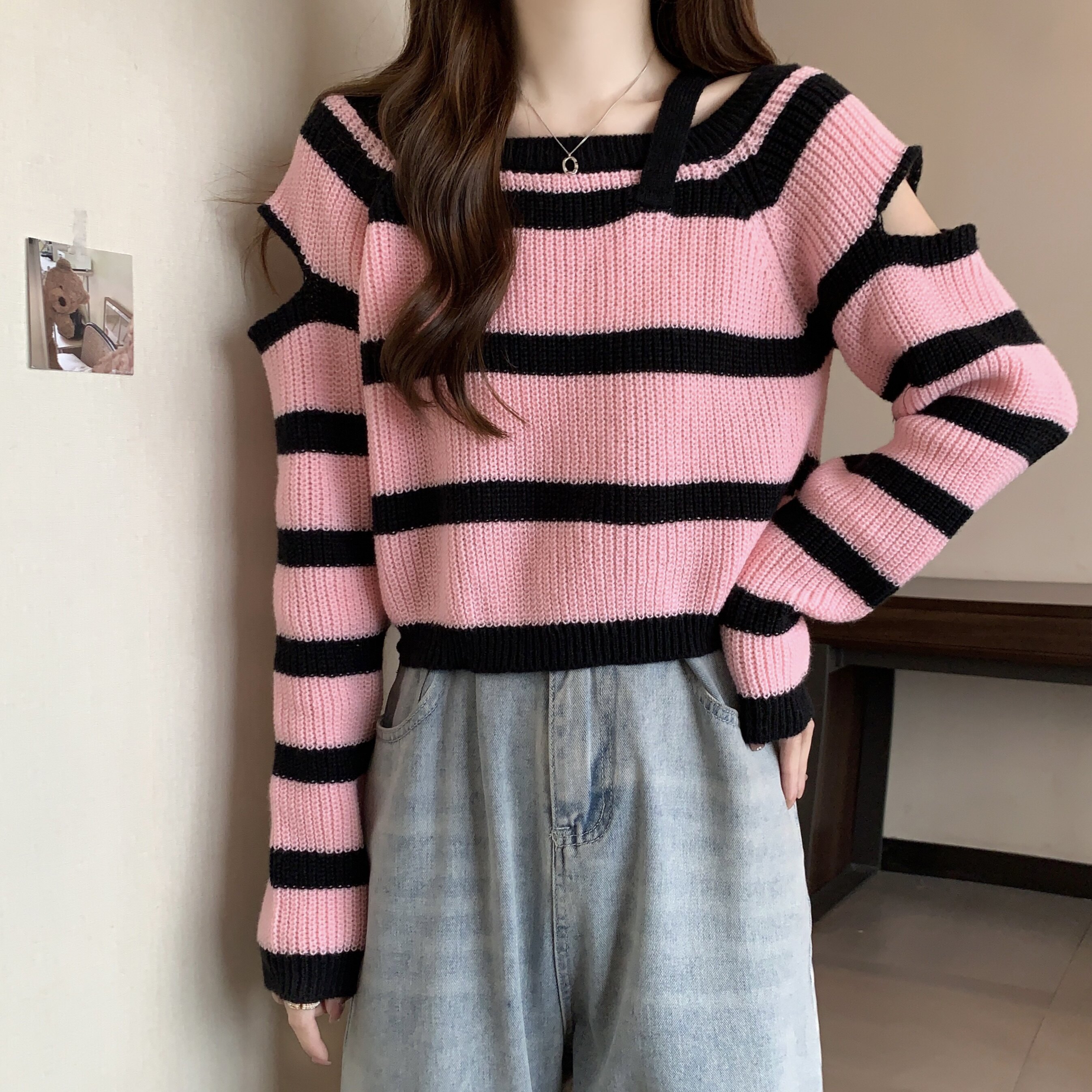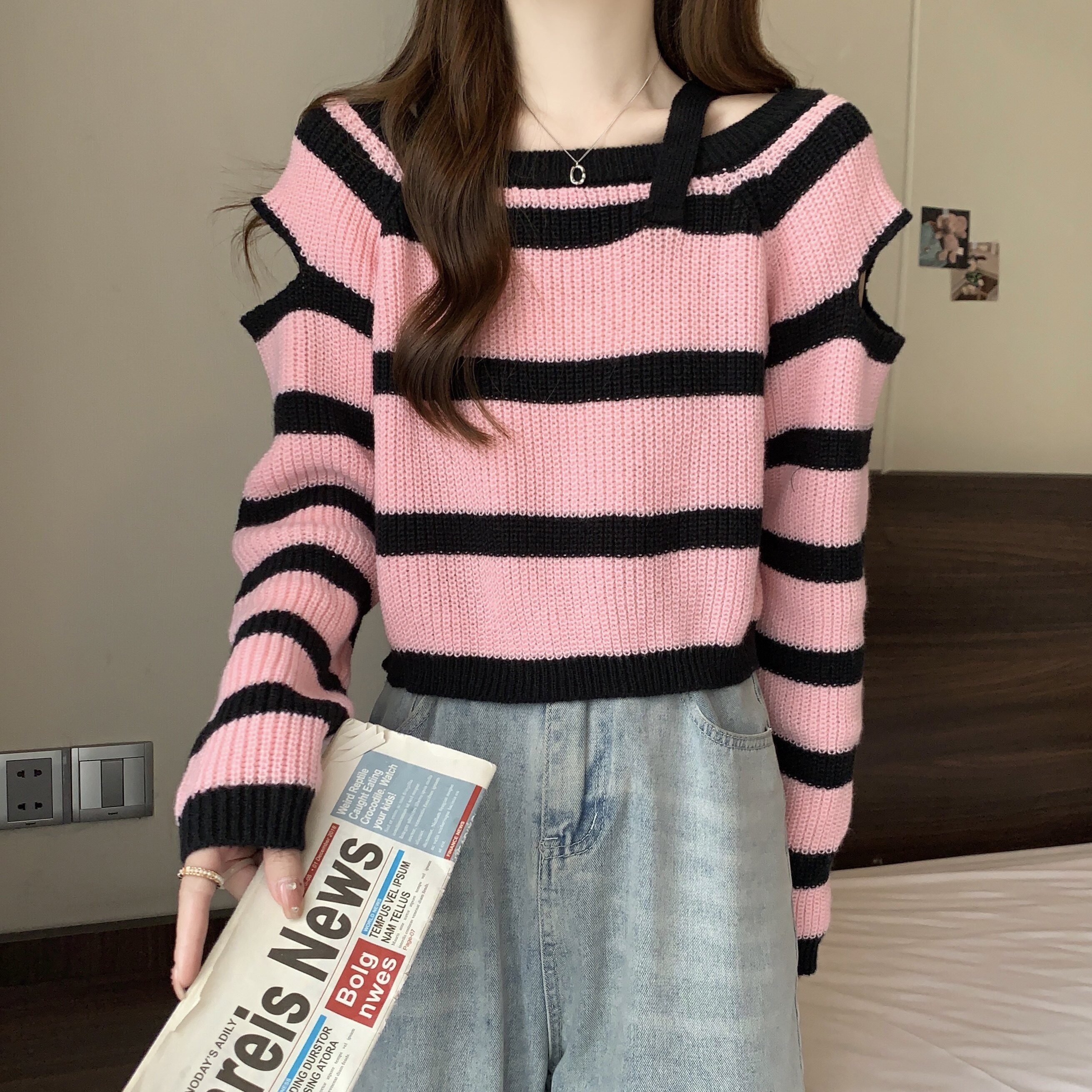 Розовый демисезонный короткий дизайнерский трикотажный свитер, большой размер, тренд сезона