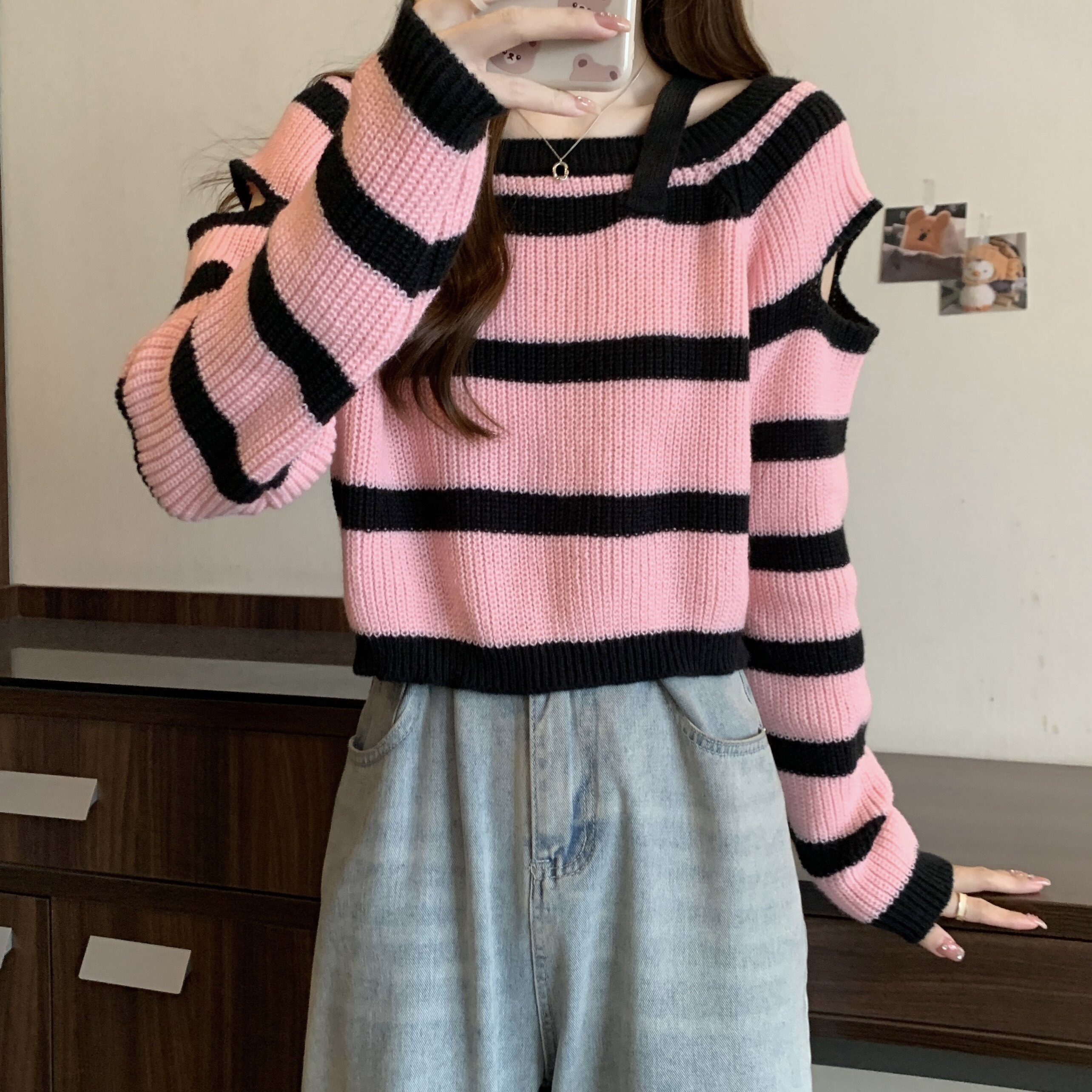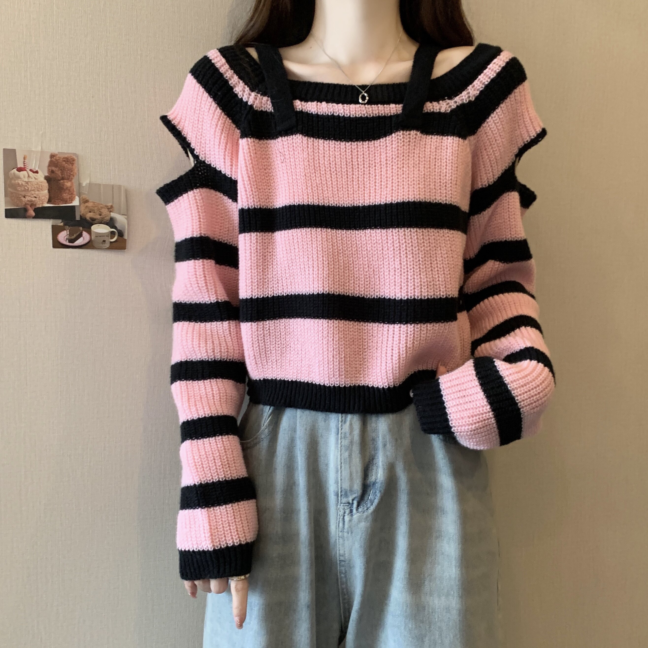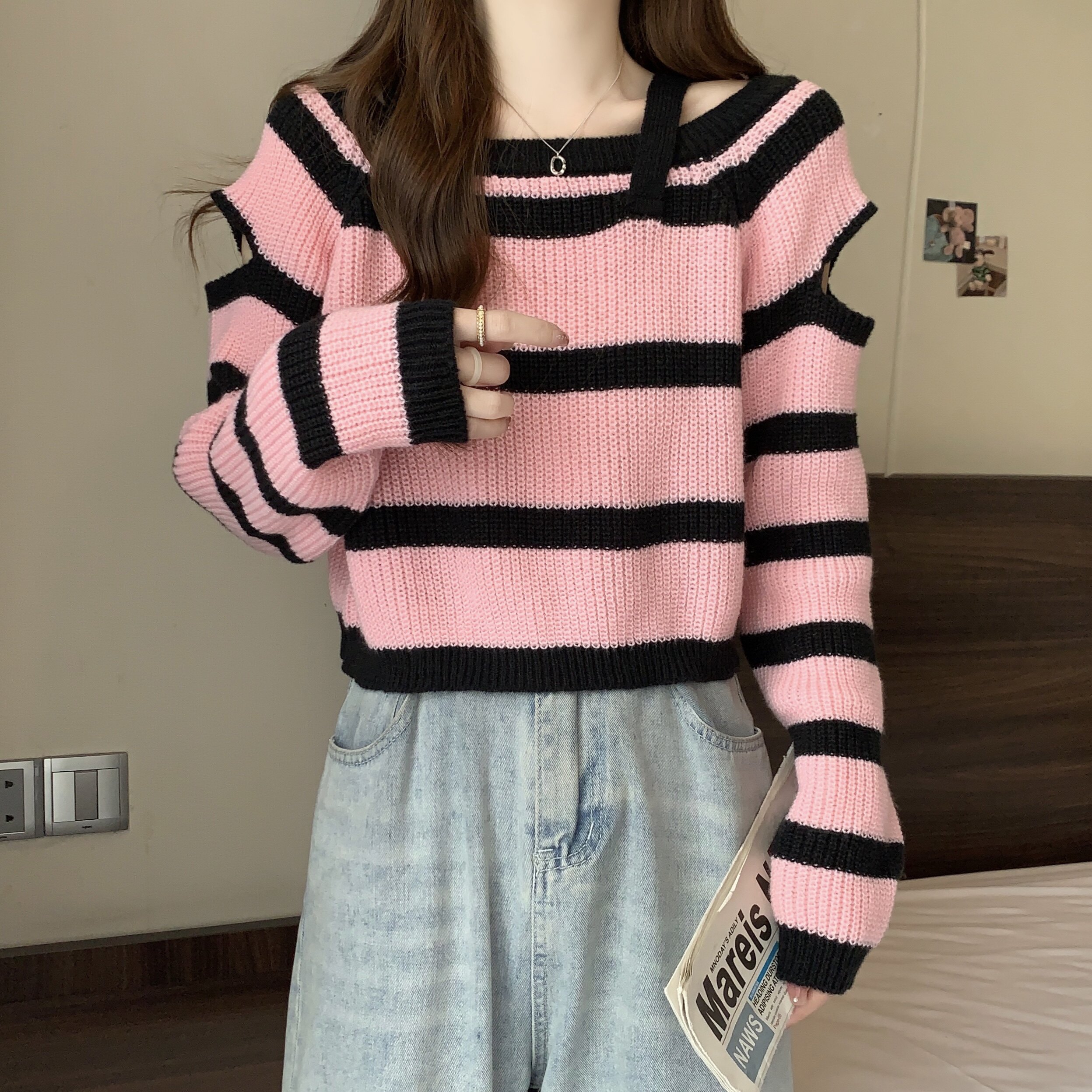 Розовый демисезонный короткий дизайнерский трикотажный свитер, большой размер, тренд сезона