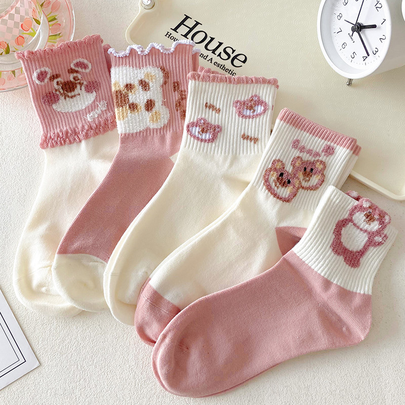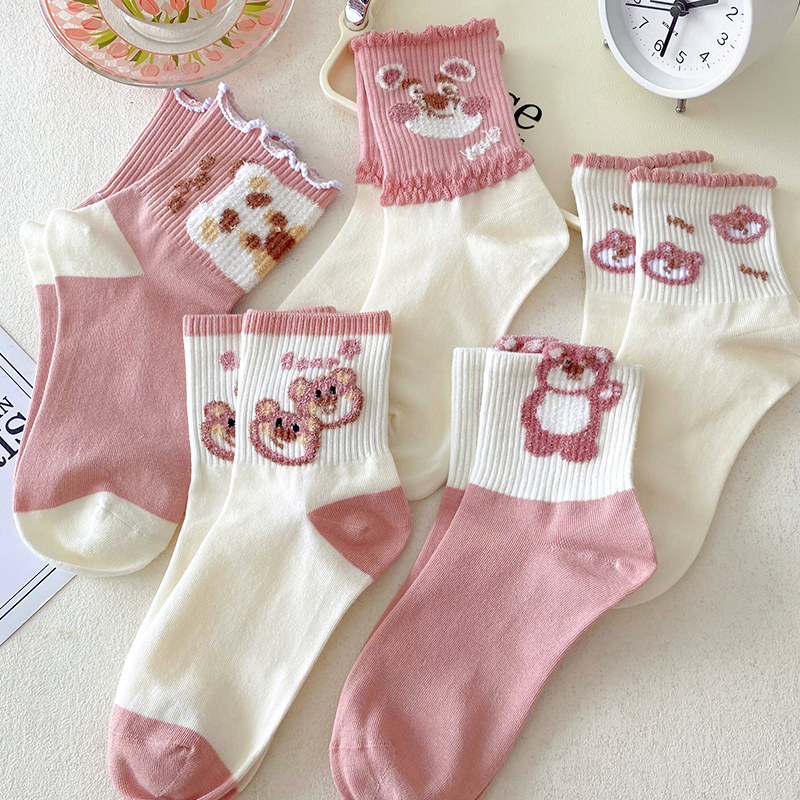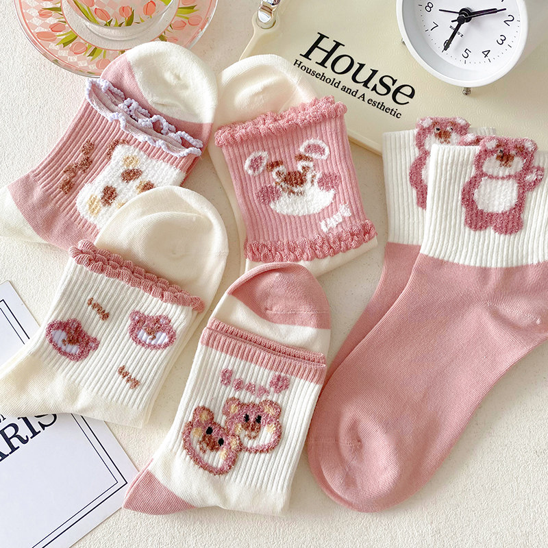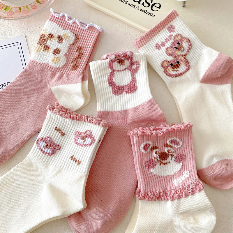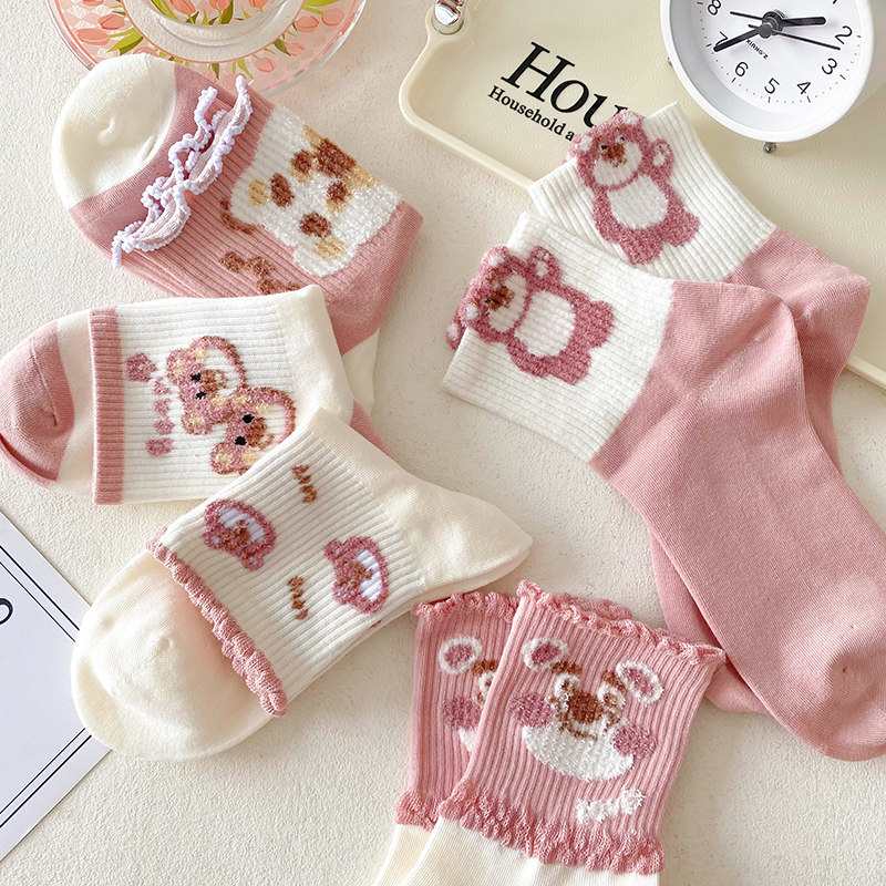 Tide, розовая клубника, осенние носки, спортивные милые гольфы, средней длины, в корейском стиле