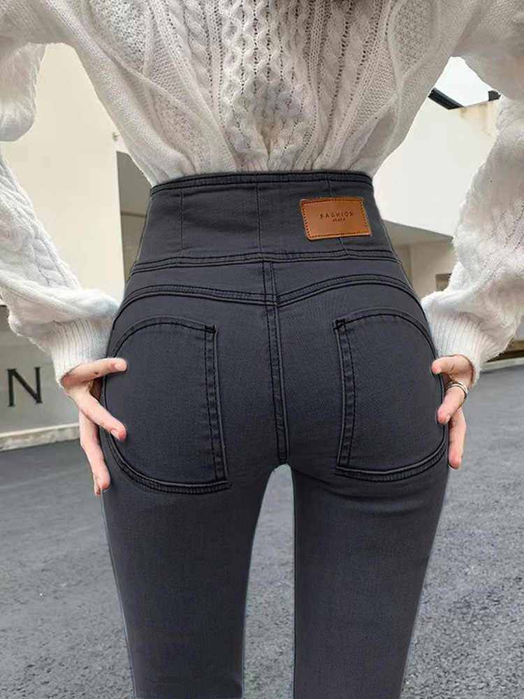 Осенние универсальные эластичные джинсы, весенние штаны, карандаш, высокая талия, по фигуре, в обтяжку