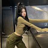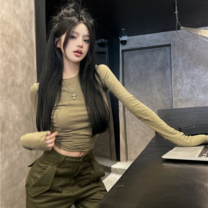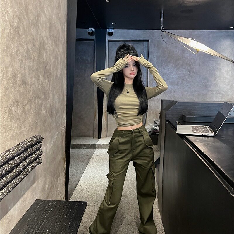 Сексуальный приталенный корсет, осенняя дизайнерская утепленный лонгслив с круглым воротником, штаны, в американском стиле, тренд сезона