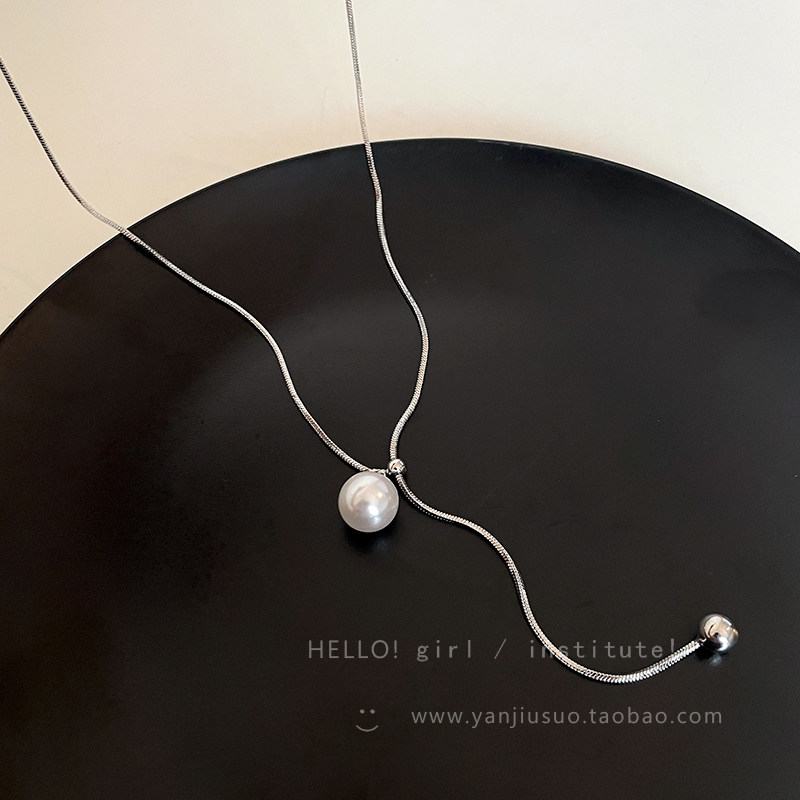 Минималистичный свитер из жемчуга, длинная демисезонная цепочка, аксессуар, ожерелье, легкий роскошный стиль, изысканный стиль, яркий броский стиль