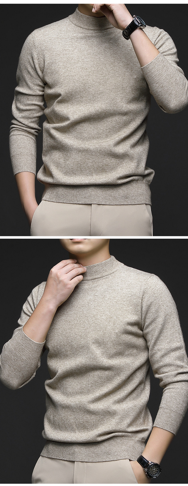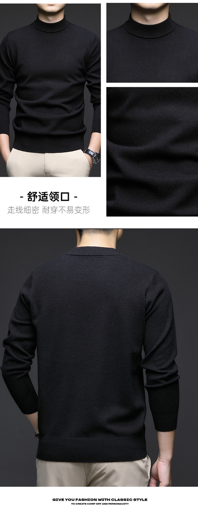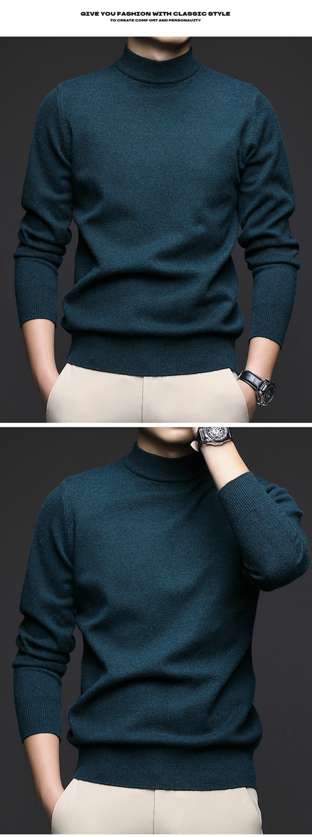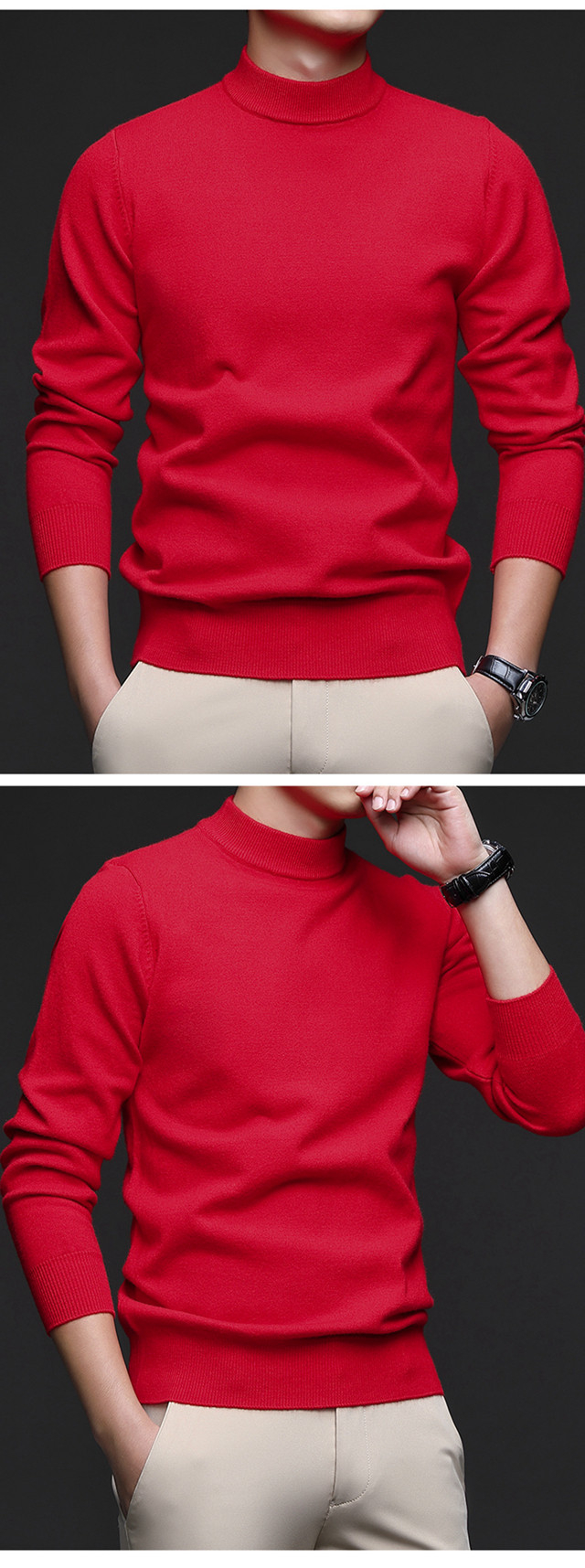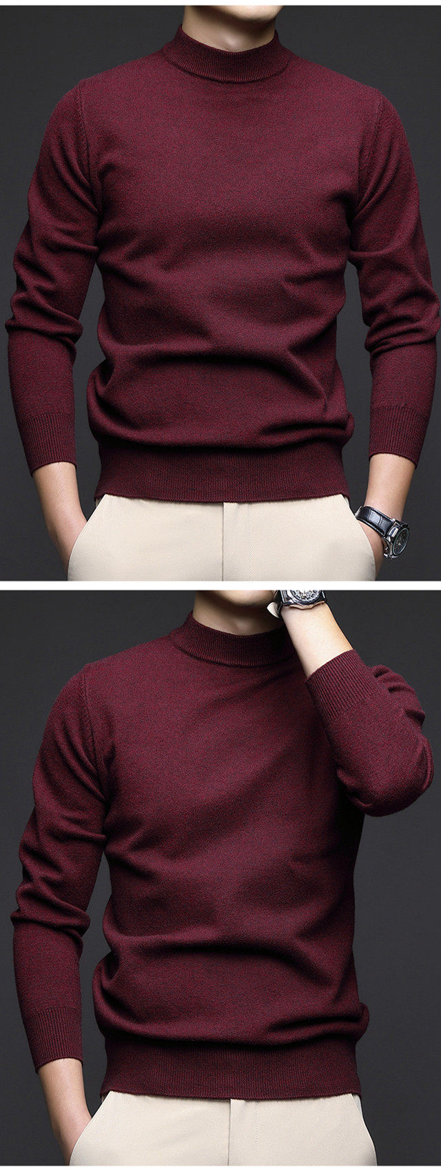 奇阿玛尼亚 Шерстяной цветной трикотажный универсальный базовый приятный телу свитер, высокий воротник, увеличенная толщина