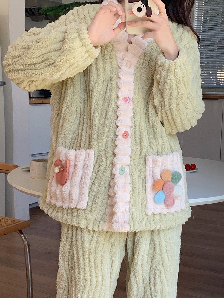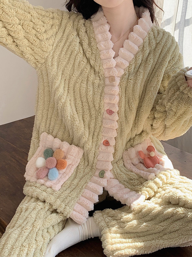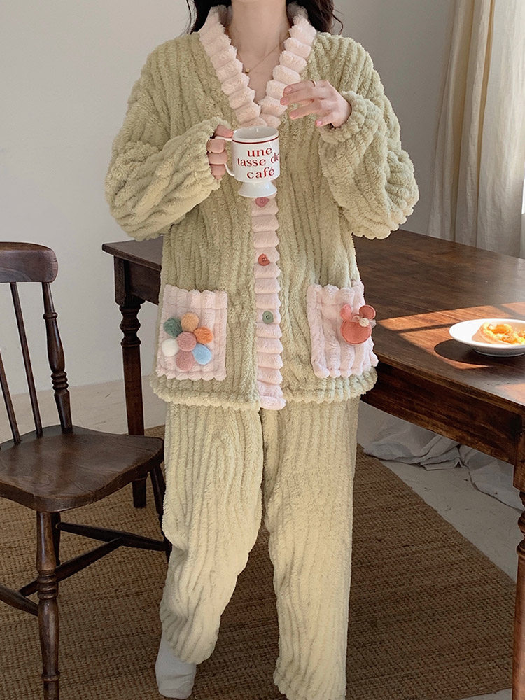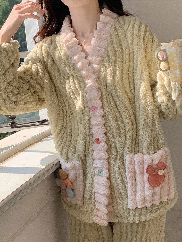Японская коралловая бархатная зимняя утепленная демисезонная фланелевая пижама