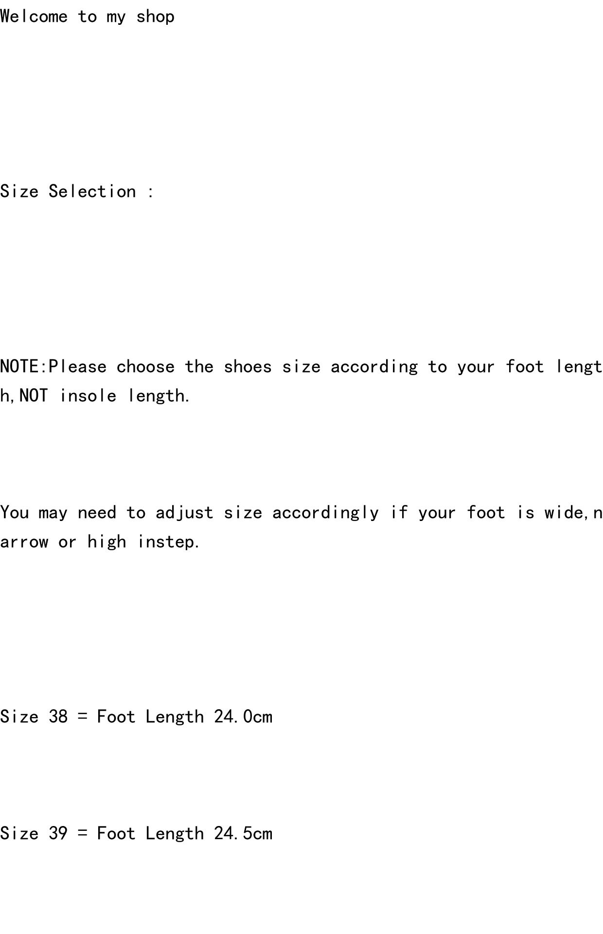 | Размер обуви: | 38(24.0CM), 39(24.5CM), 40(25.0CM), 41(25.5CM), 42(26.0CM), 43(26.7CM), 44(27.3CM), 45(28.0CM), 46(28.7CM) |