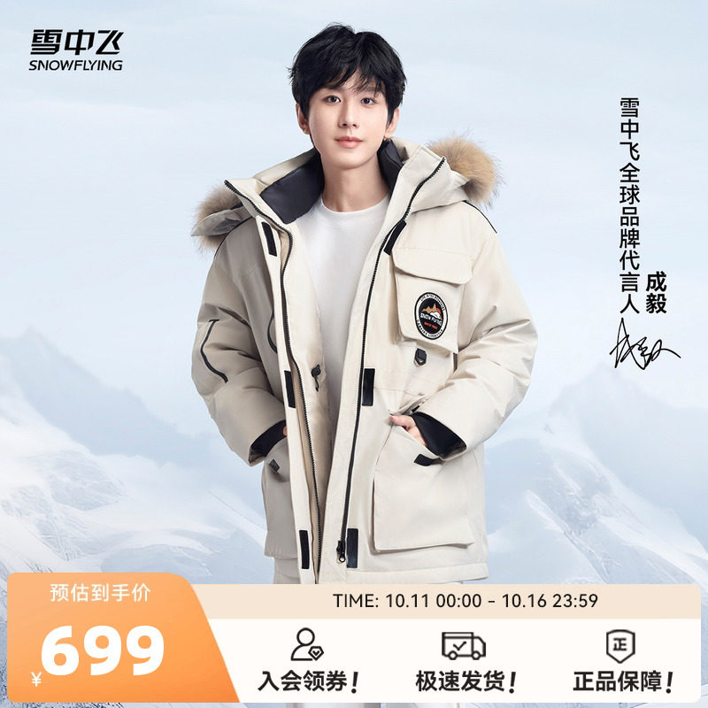 [Чэн И в том же стиле] Fei Naika пуховая спецодежда в снегу 25 зимних новых мужских и женских гусиных пуховиков Parker с воротником из меха енота