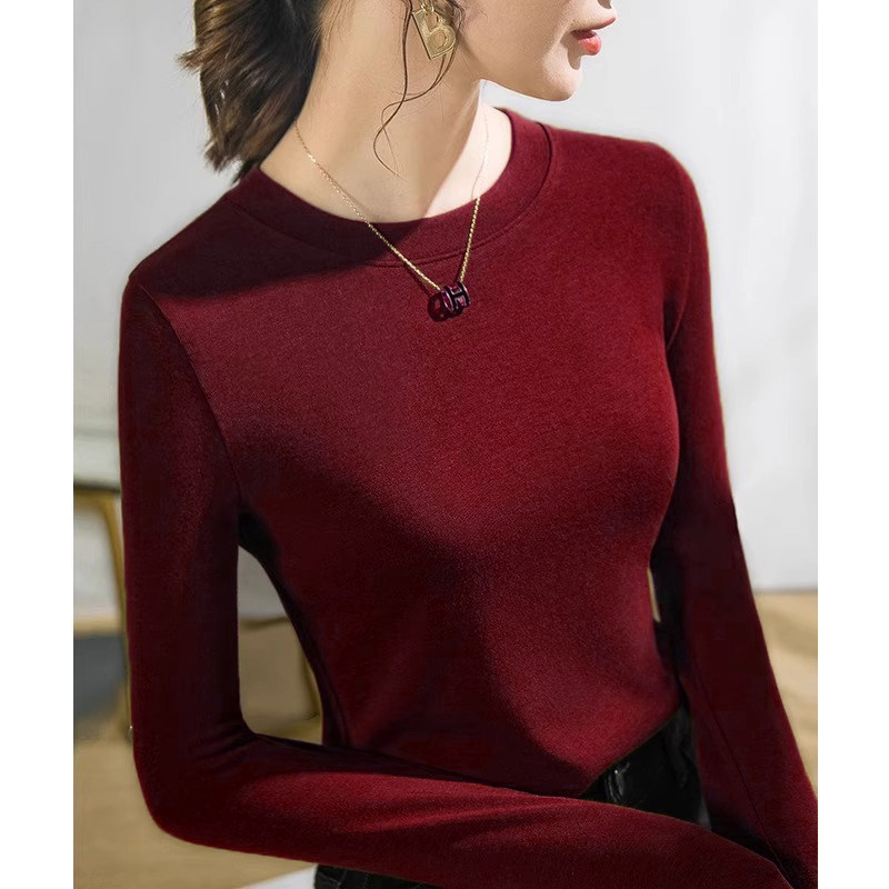 Флисовый базовый приятный телу весенний бордовый лонгслив с круглым воротником, в стиле Шанель