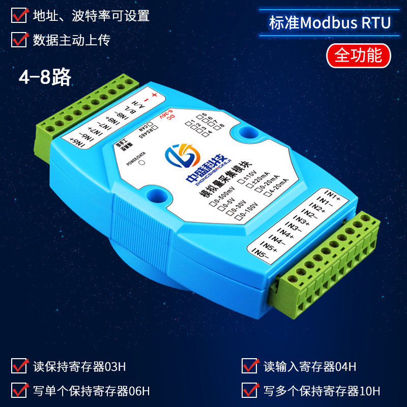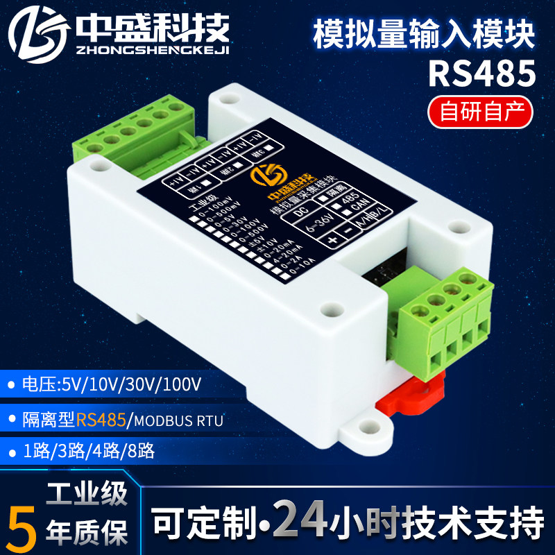 Вход сбора моделирования напряжения в RS485 Модуль 5/10/30/100 В промышленного класса USB до 485 Zhongsheng