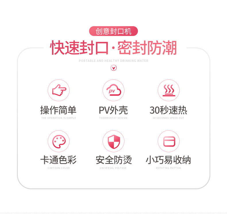 | Цвет: | Портативная запечатывающая машина (плоская, розовая), Портативная запечатывающая машина (плоская фиолетовая), Портативная запечатывающая машина (плоская синяя), Портативная запечатывающая машина (волнистый розовый), Портативная запечатывающая машина (волнистый фиолетовый), Портативный герметик (Wave Blue) |