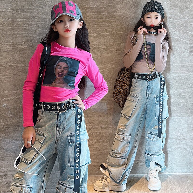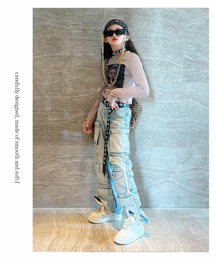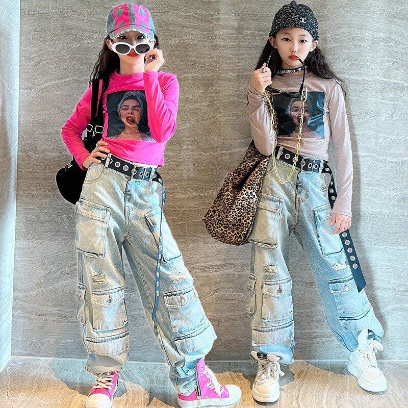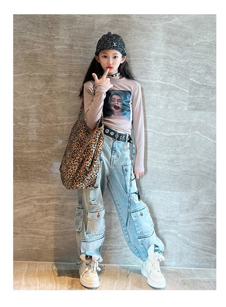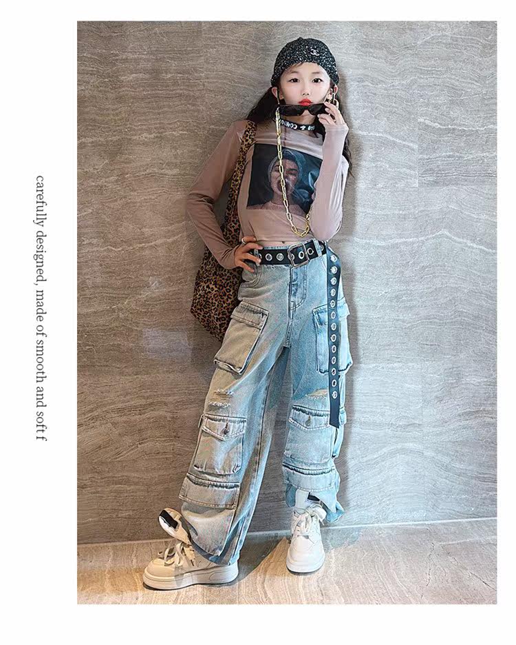 Детские осенние джинсы, штаны, в американском стиле, свободный прямой крой