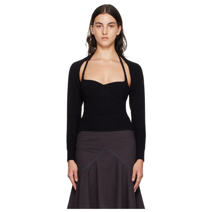 [ 商品描述 : ][弹性针织开衫。]·[ 正面开襟]·[ 罗纹针织袖口供应商配色:Black]